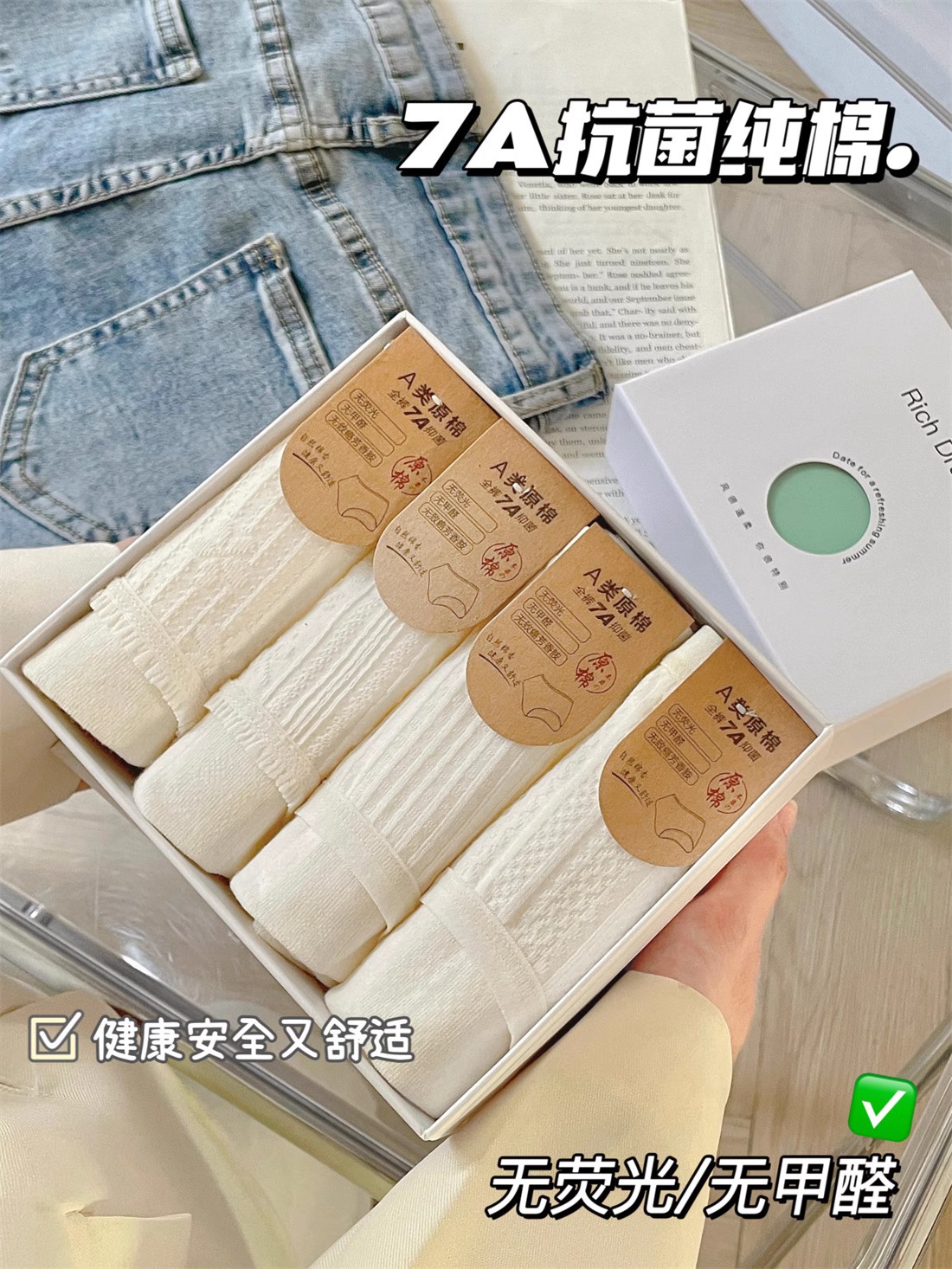 7A抗菌内裤女生纯棉全棉裆部舒适透气无痕中腰白色简约少女三角裤