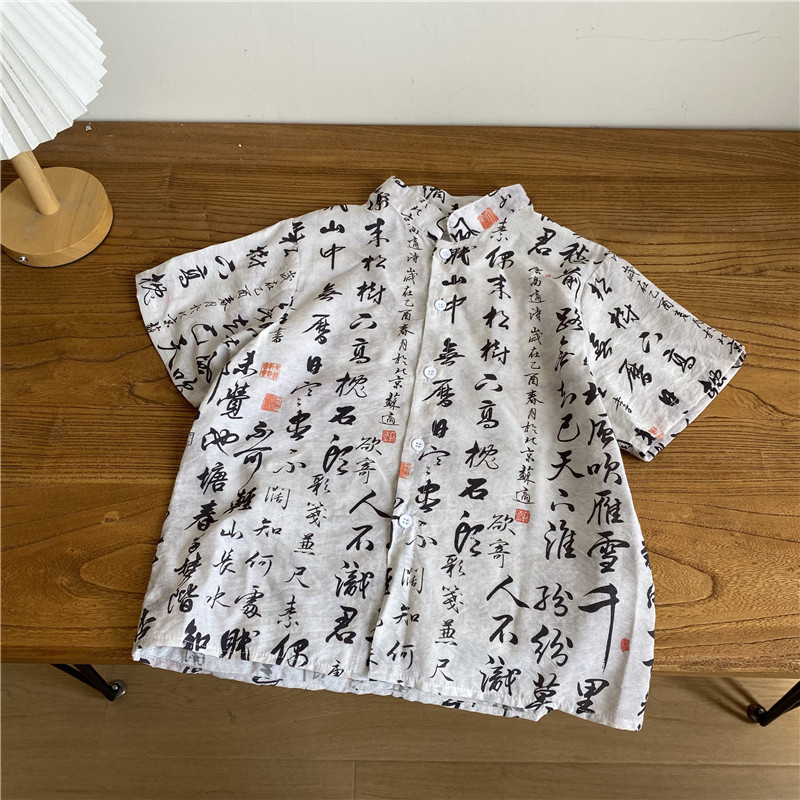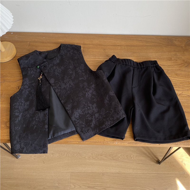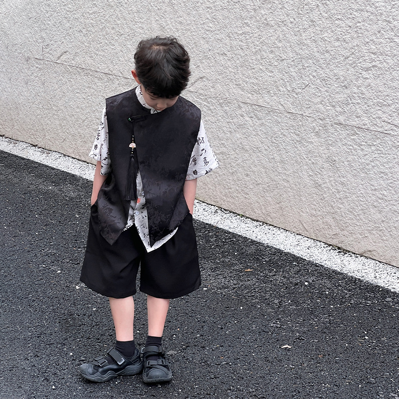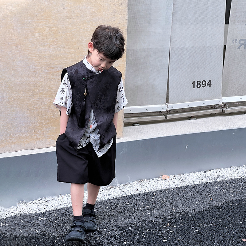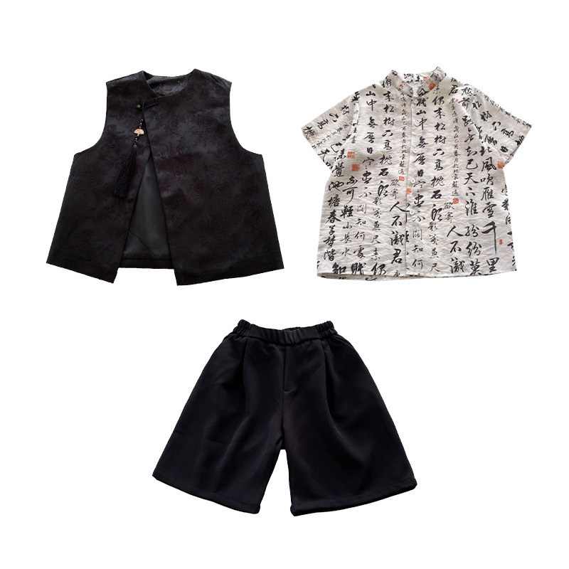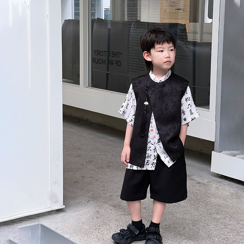 儿童汉服套装夏季新品童装男童新中式衬衫+马甲短裤三件套潮