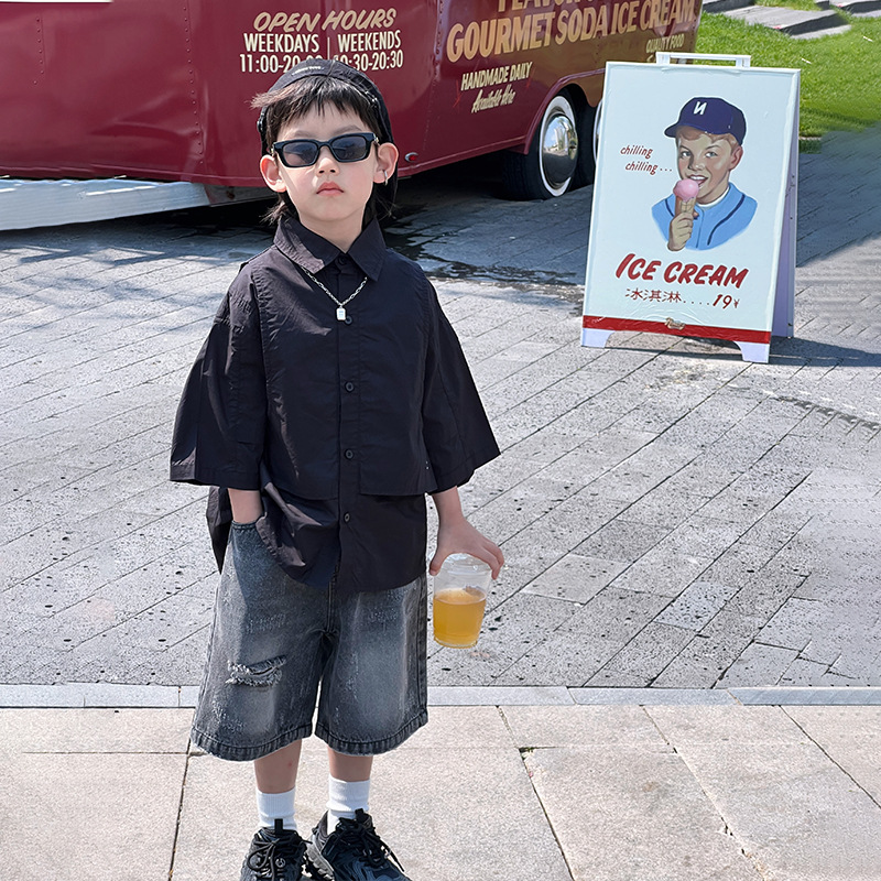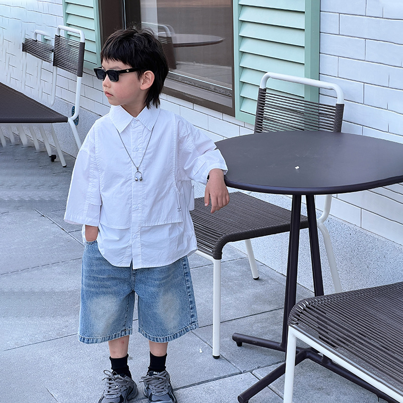 男童夏装儿童短袖衬衫宝宝宽松白色上衣夏季新款男孩纯棉衬衣