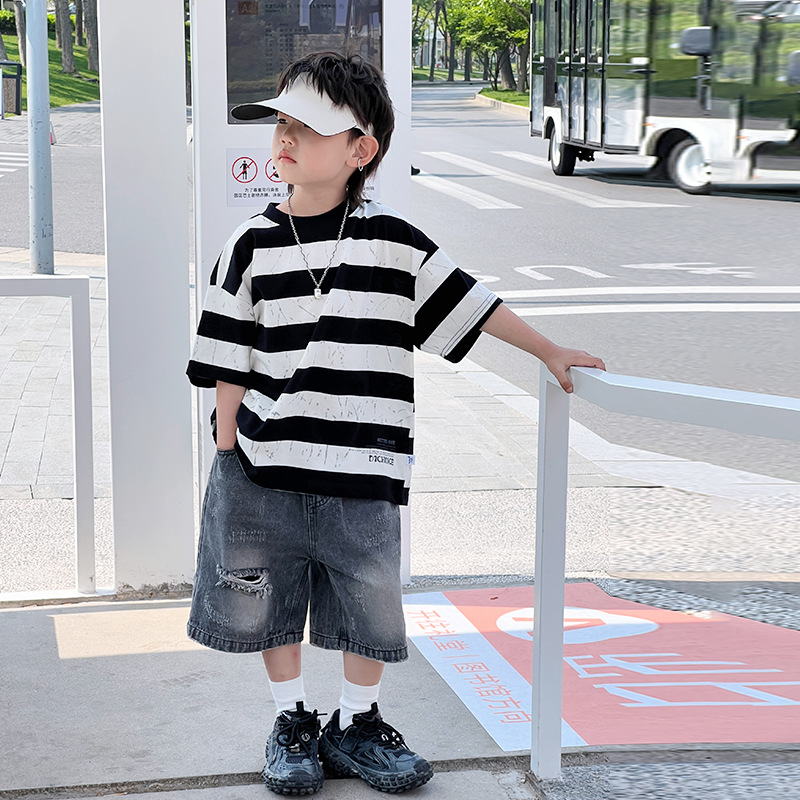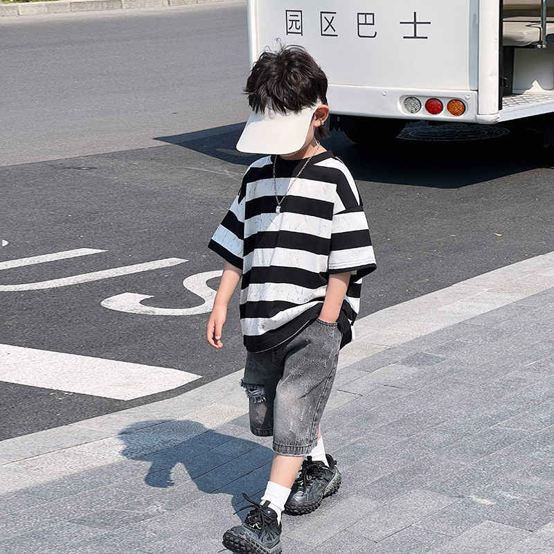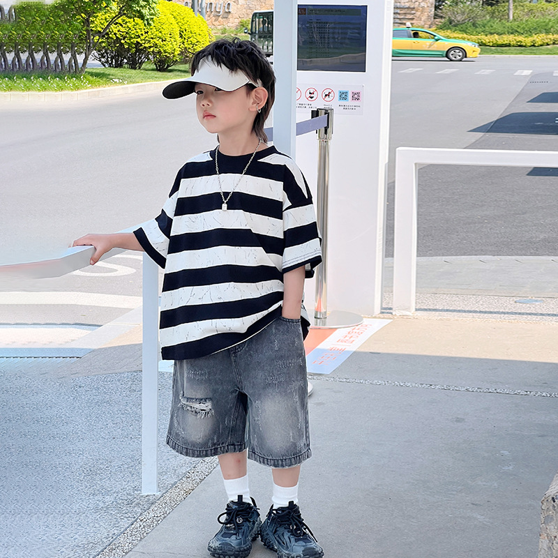 儿童短袖T恤男童夏装宝宝条纹纯棉上衣夏季新款男孩半袖体恤5