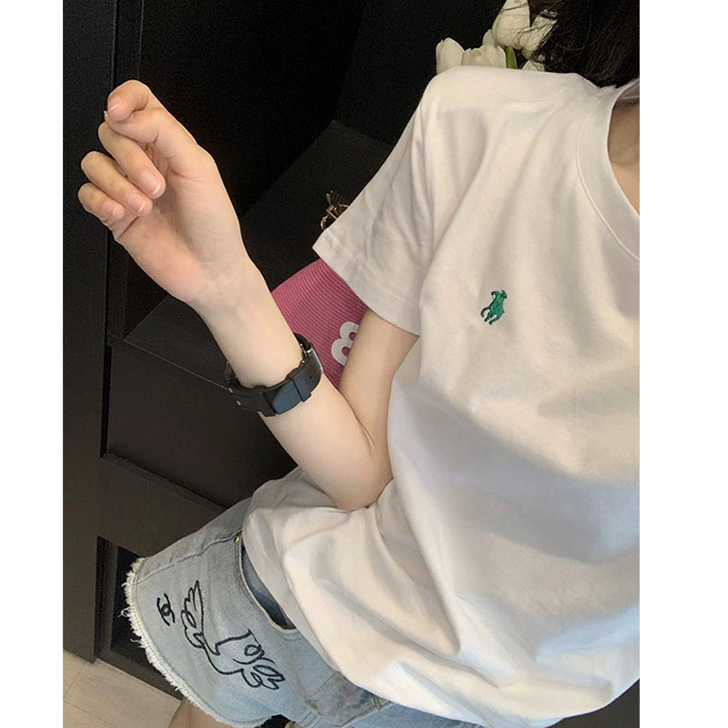 白色正肩短袖T恤女夏季基础款百搭纯棉打底体恤印花宽松上衣ins潮