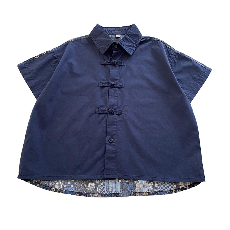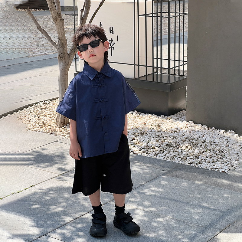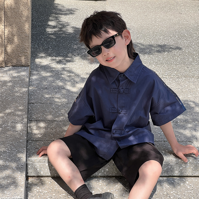 男童短袖衬衫新中式国风儿童衬衣夏季盘扣唐装汉服男孩国潮