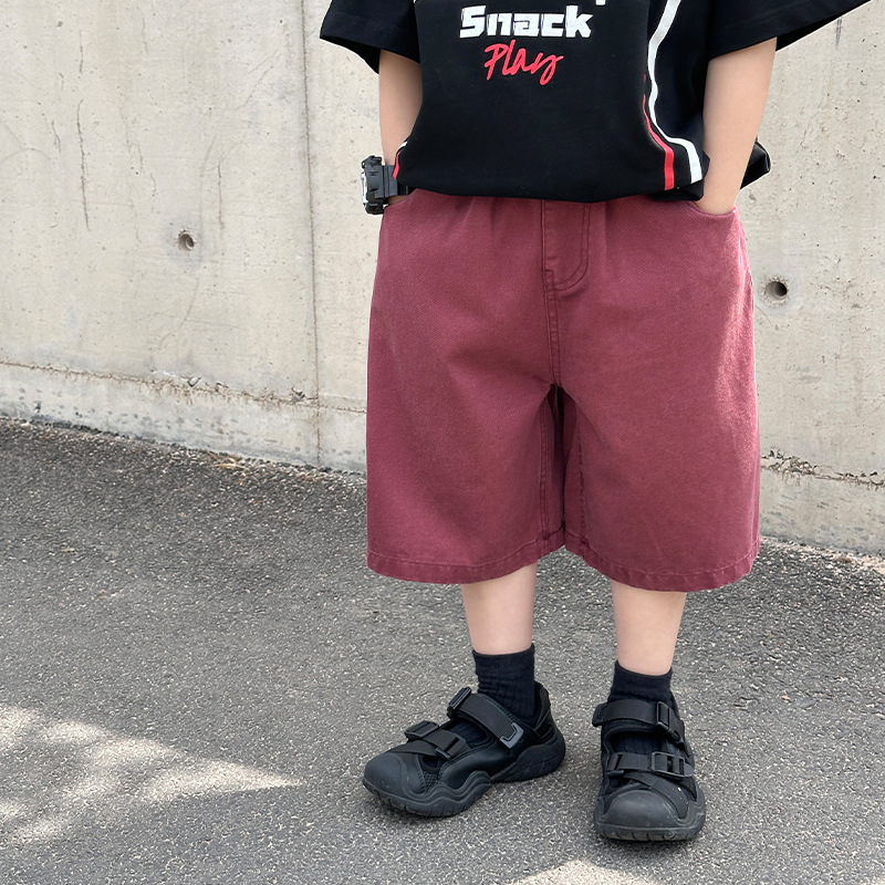 麦可希童装儿童裤子红色夏季新品韩版中大男童宽松休闲短裤潮