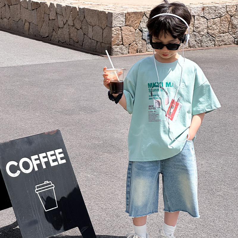 儿童裤子男童牛仔短裤宝宝夏季薄款透气五分裤新款男孩直筒裤