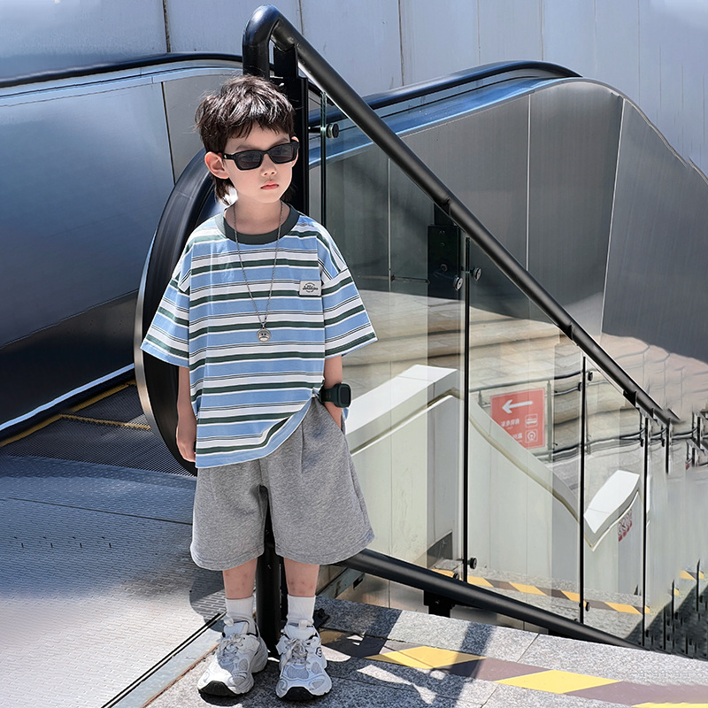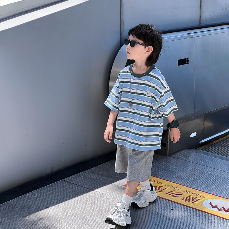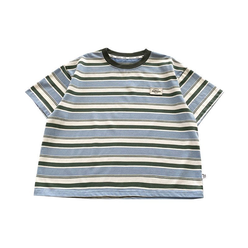 麦可希童装男童短袖t恤儿童条纹半袖新款中大童夏季上衣宽松