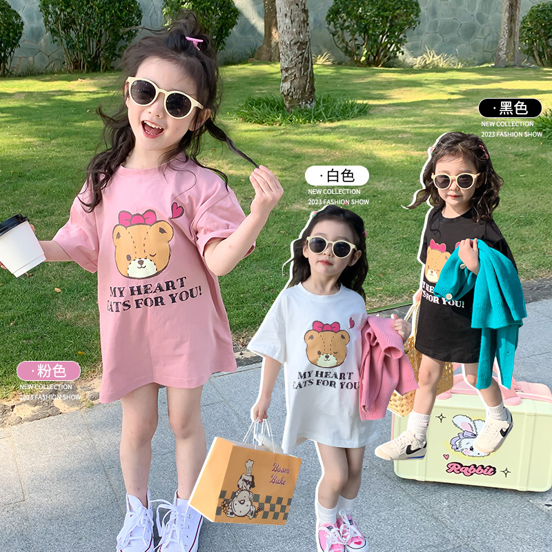 女童短袖纯棉洋气儿童t恤女童夏季宽松前后印花半袖上衣童装潮