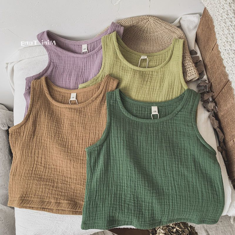 夏季男女童背心吊带宝宝洋气儿童个性潮复古森系棉麻纯色内搭外穿