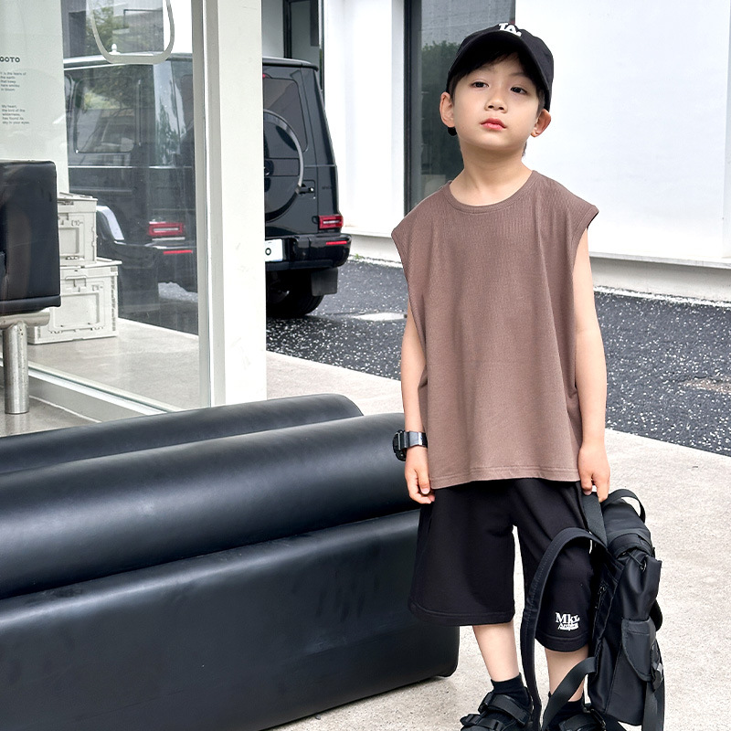 麦可希童装男童背心纯棉夏季新款儿童透气无袖T恤男孩衣服