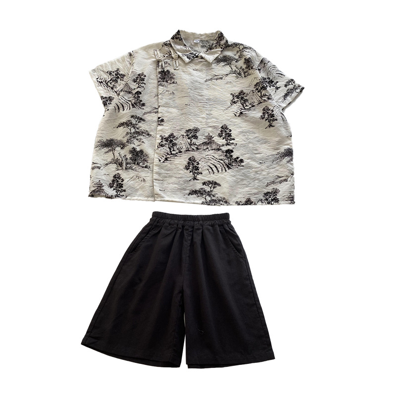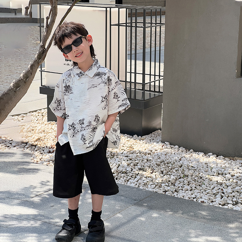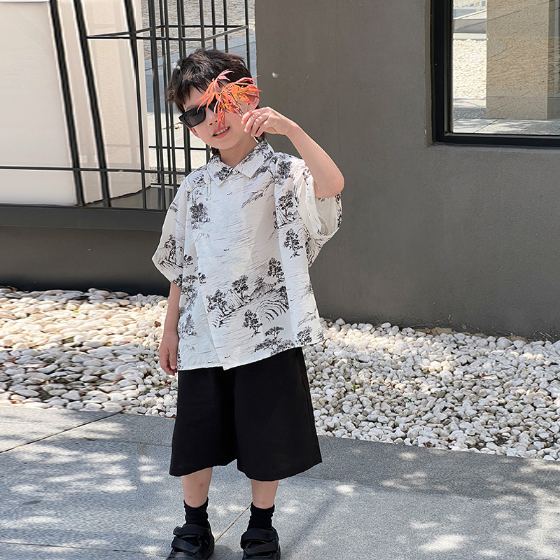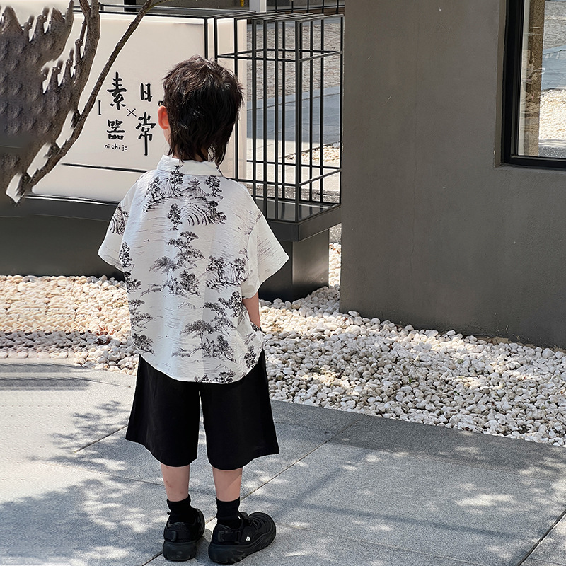 男童汉服套装夏季新款儿童新中式短袖衬衫小男孩中国风演出服