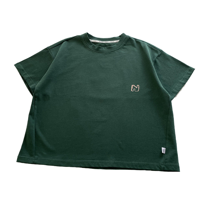 纯棉正肩卡通印花T恤女短袖夏修身显瘦褶皱收腰设计感不规则上衣