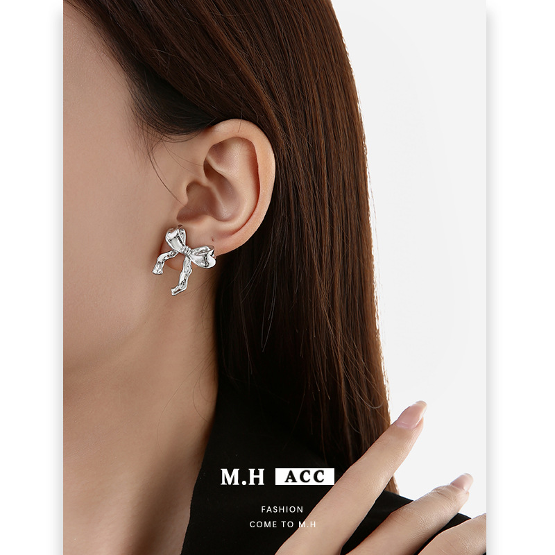 韩系蝴蝶结耳环女气质百搭精致跨境耳钉925银针高级感耳饰ins