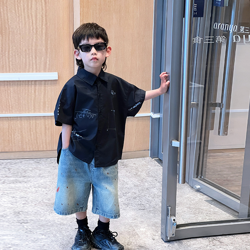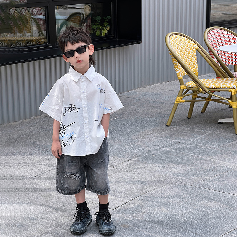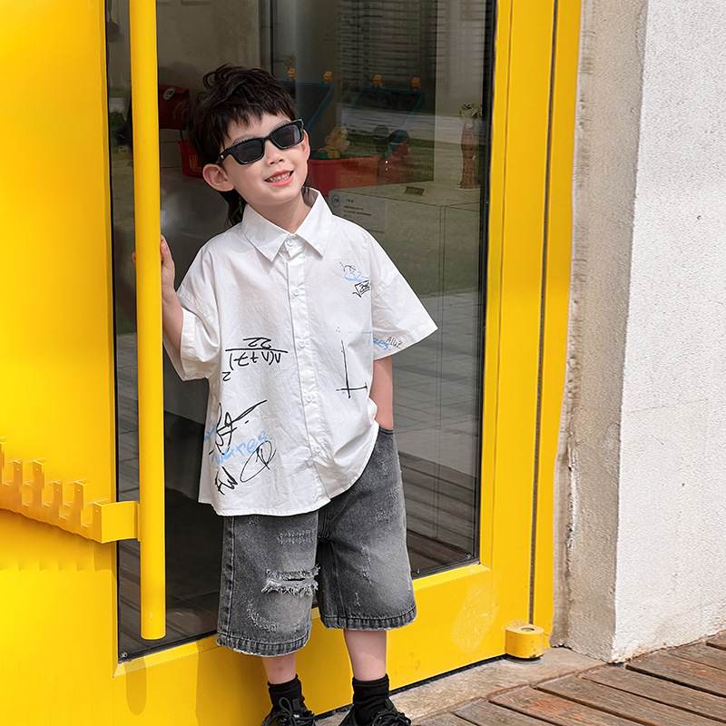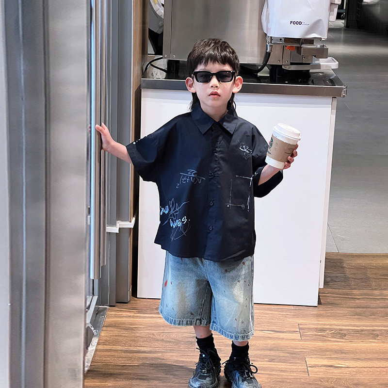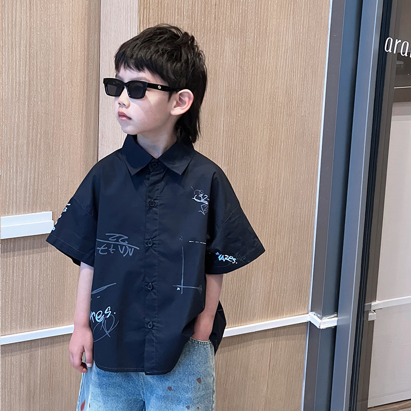麦可希儿童短袖衬衫夏季新款男童夏装宝宝宽松上衣织里童装