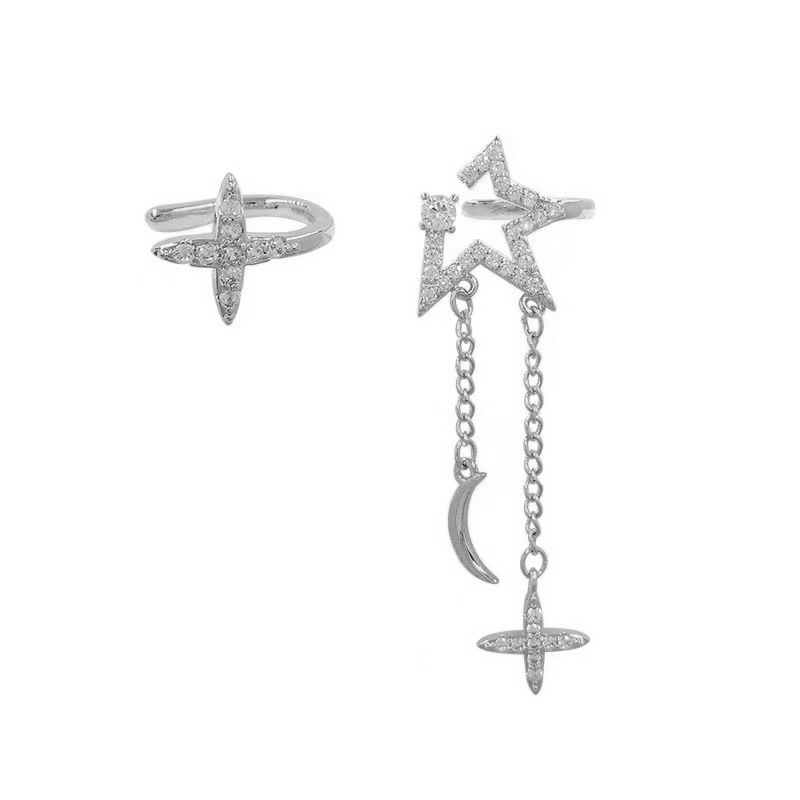 星星月亮无耳洞耳夹小众ins设计十字架流苏耳环高级感气质耳饰女