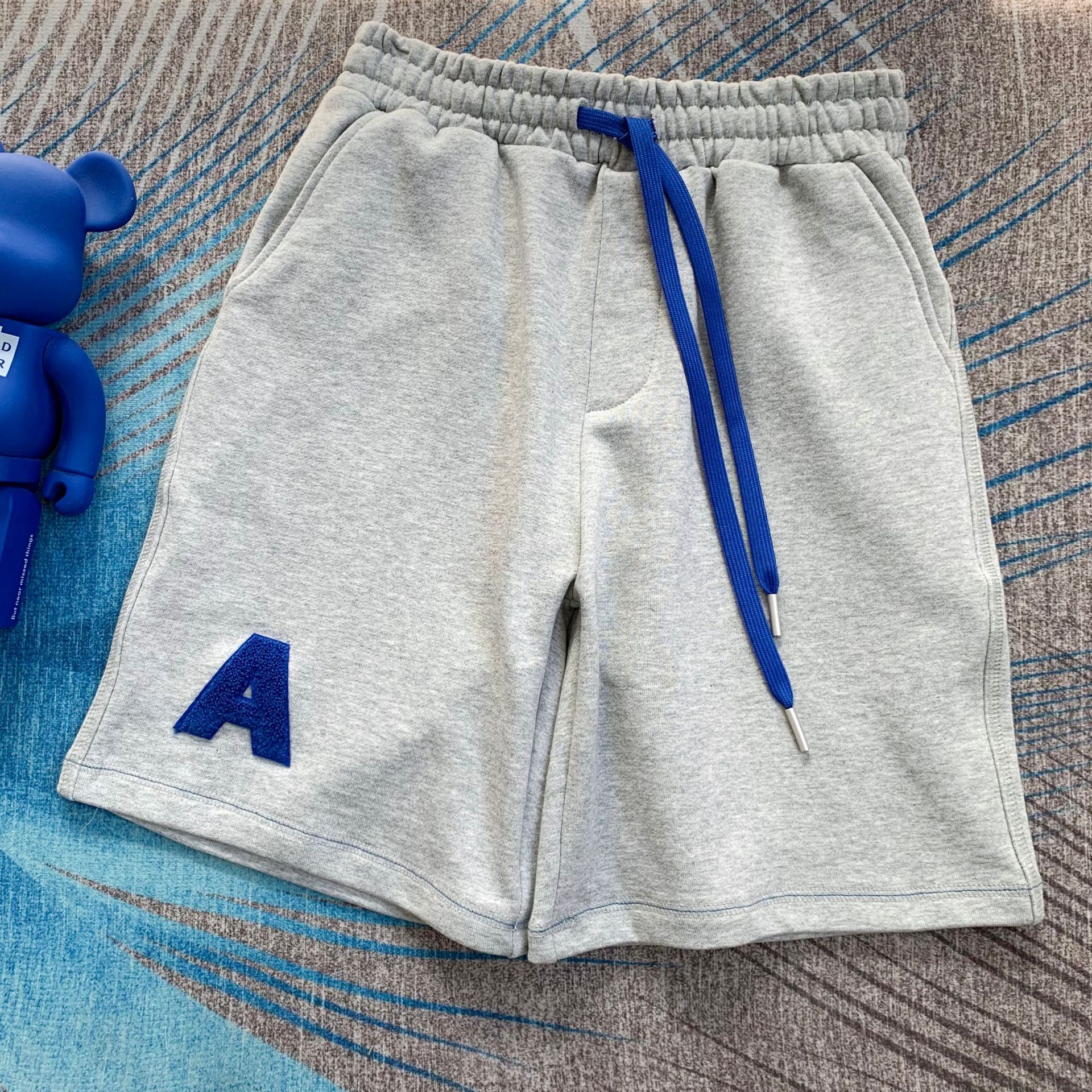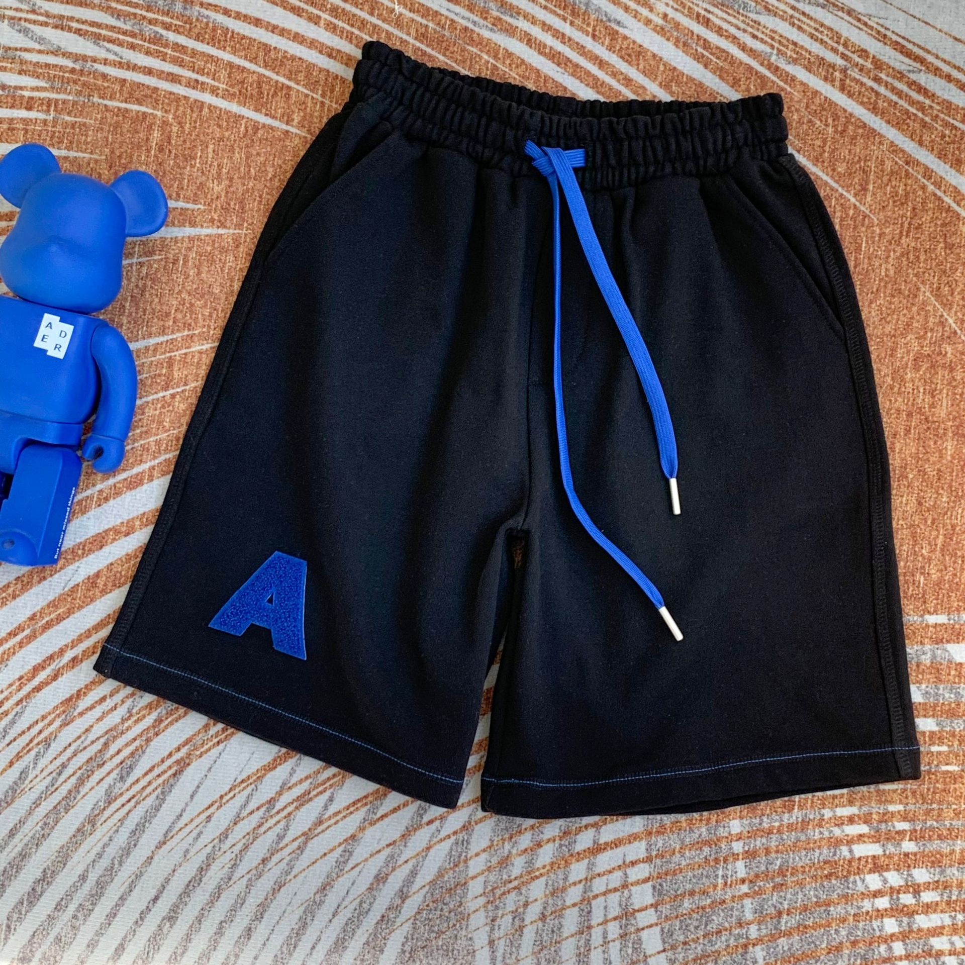 潮牌ADER夏季宽松休闲运动短裤毛巾刺绣A字母贴布男女同款五分裤