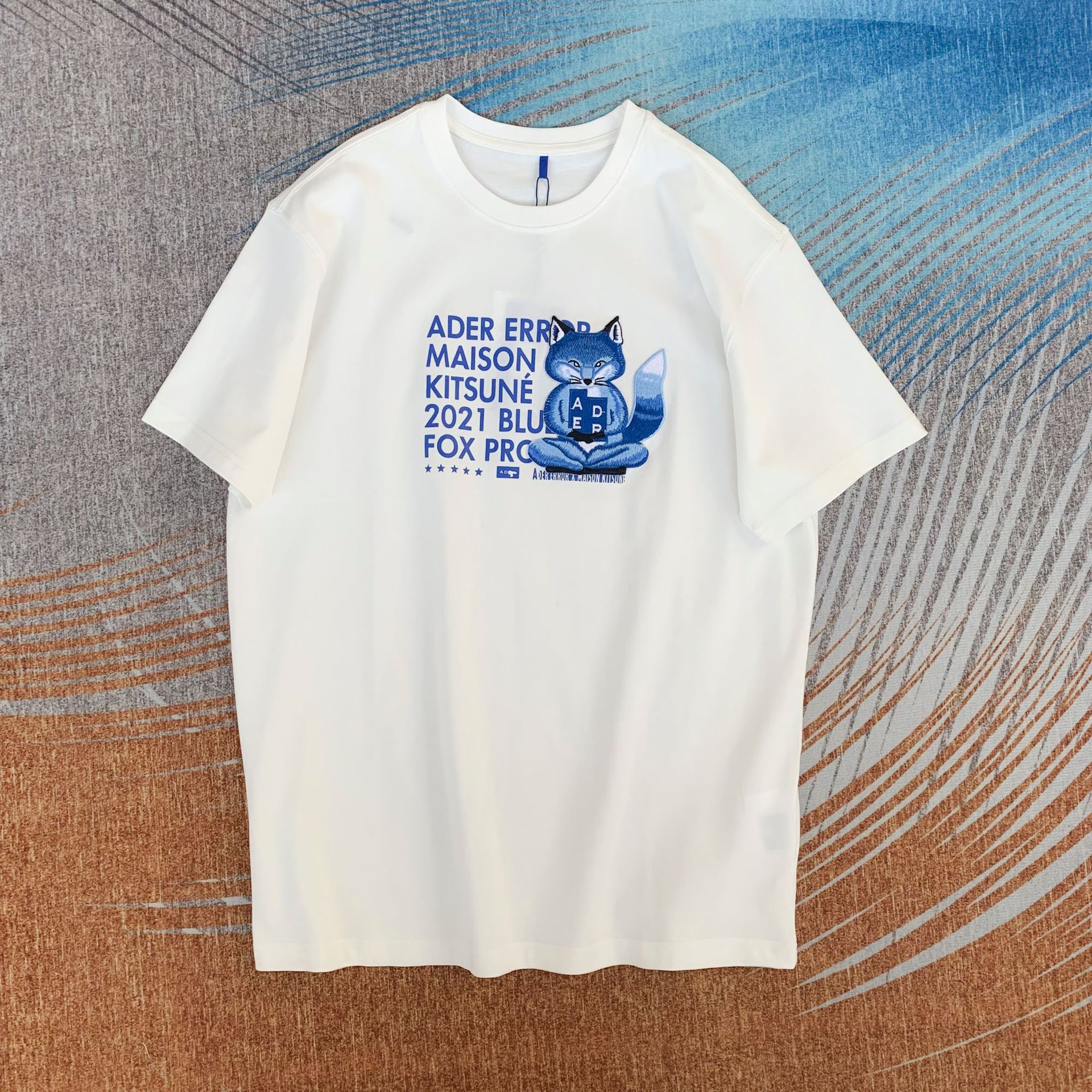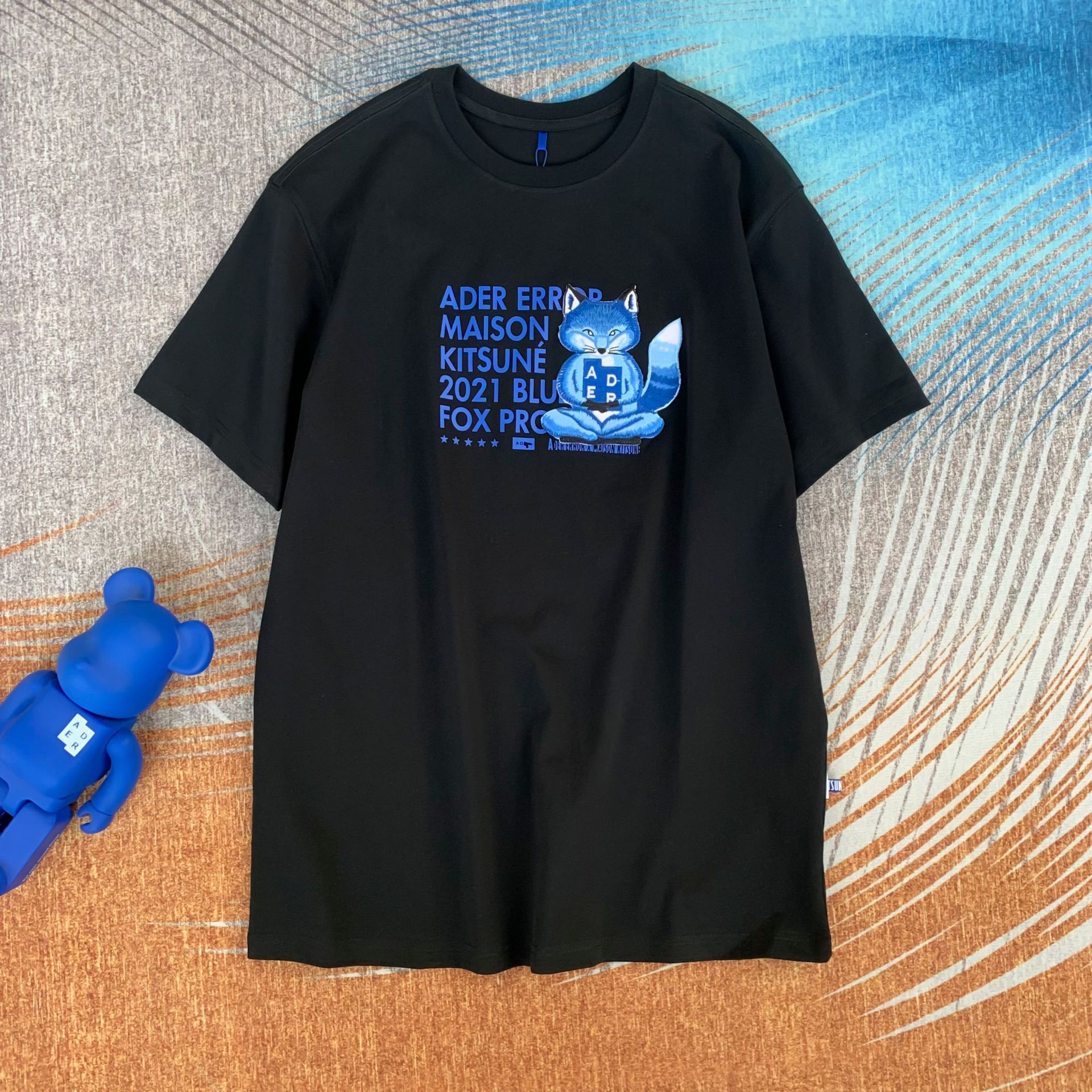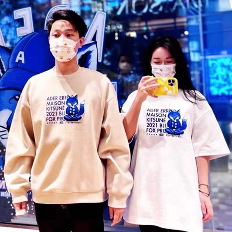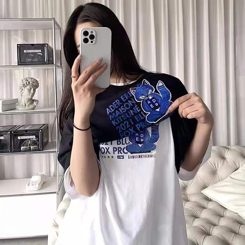 韩国潮牌ADER打坐狐狸刺绣宽松圆领短袖男女同款T恤夏季情侣上衣