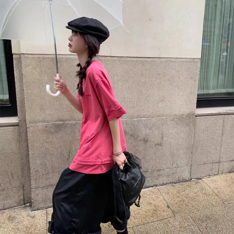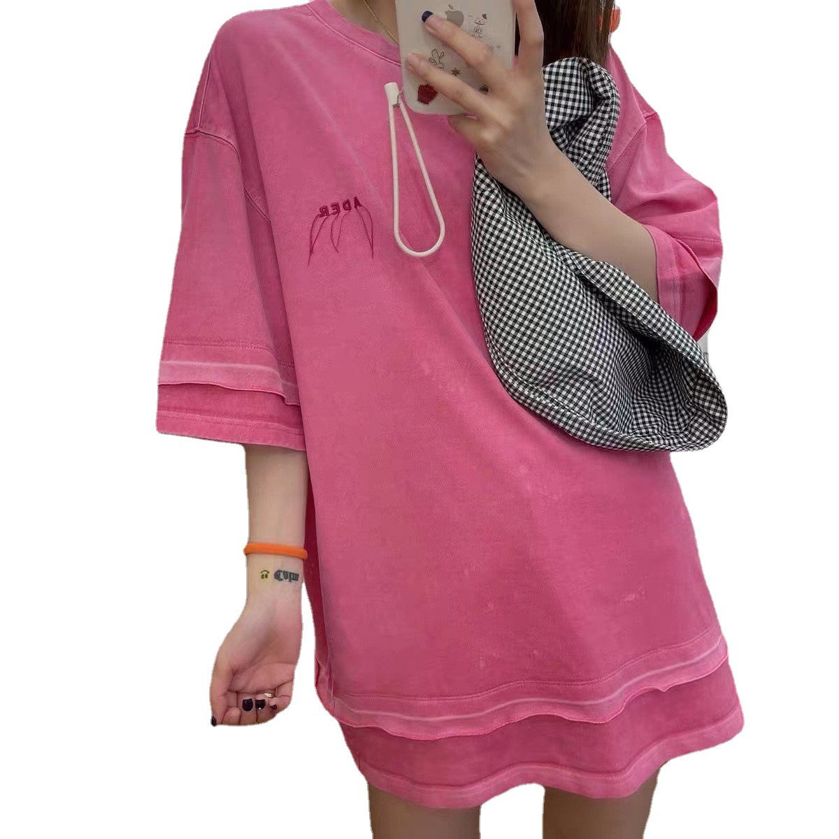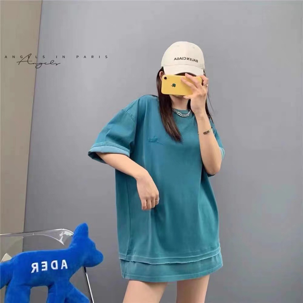 ADER潮流纯色简约流苏小标T恤男女同款宽松休闲短袖情侣夏款半袖