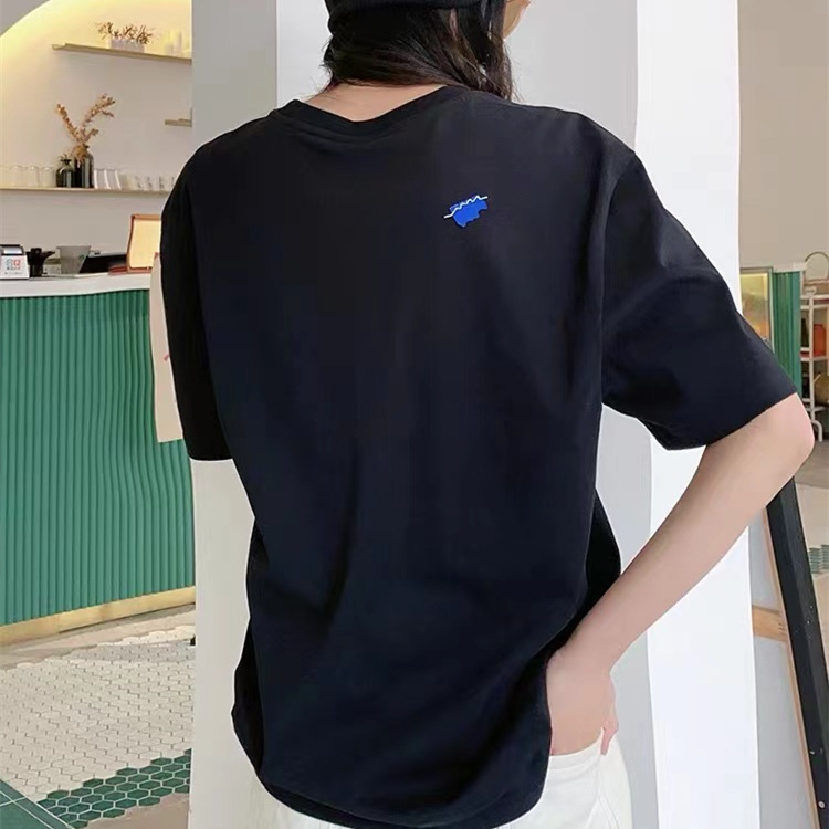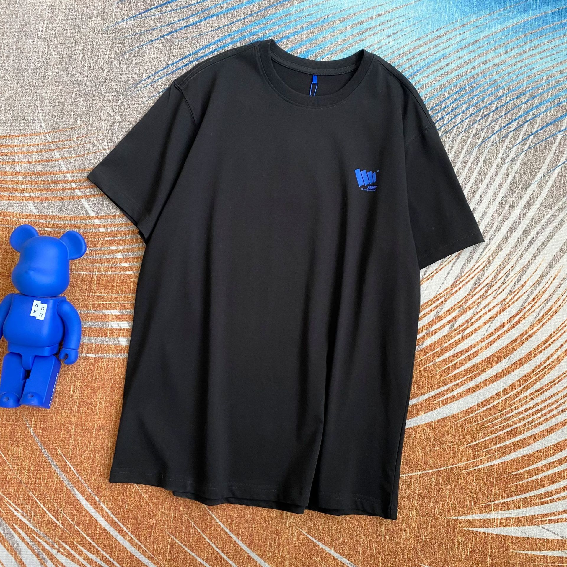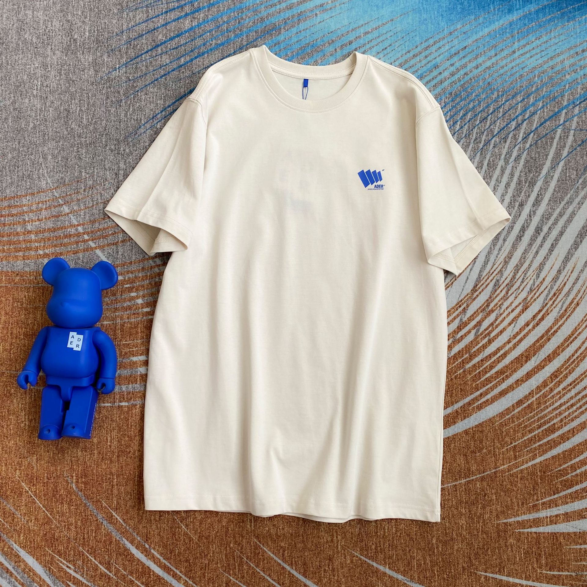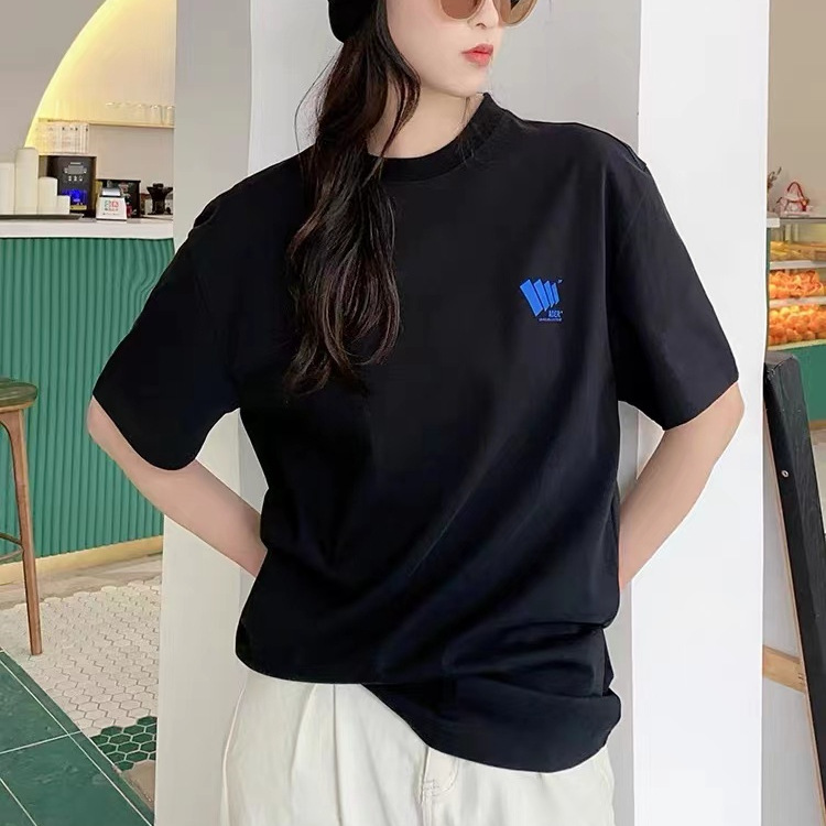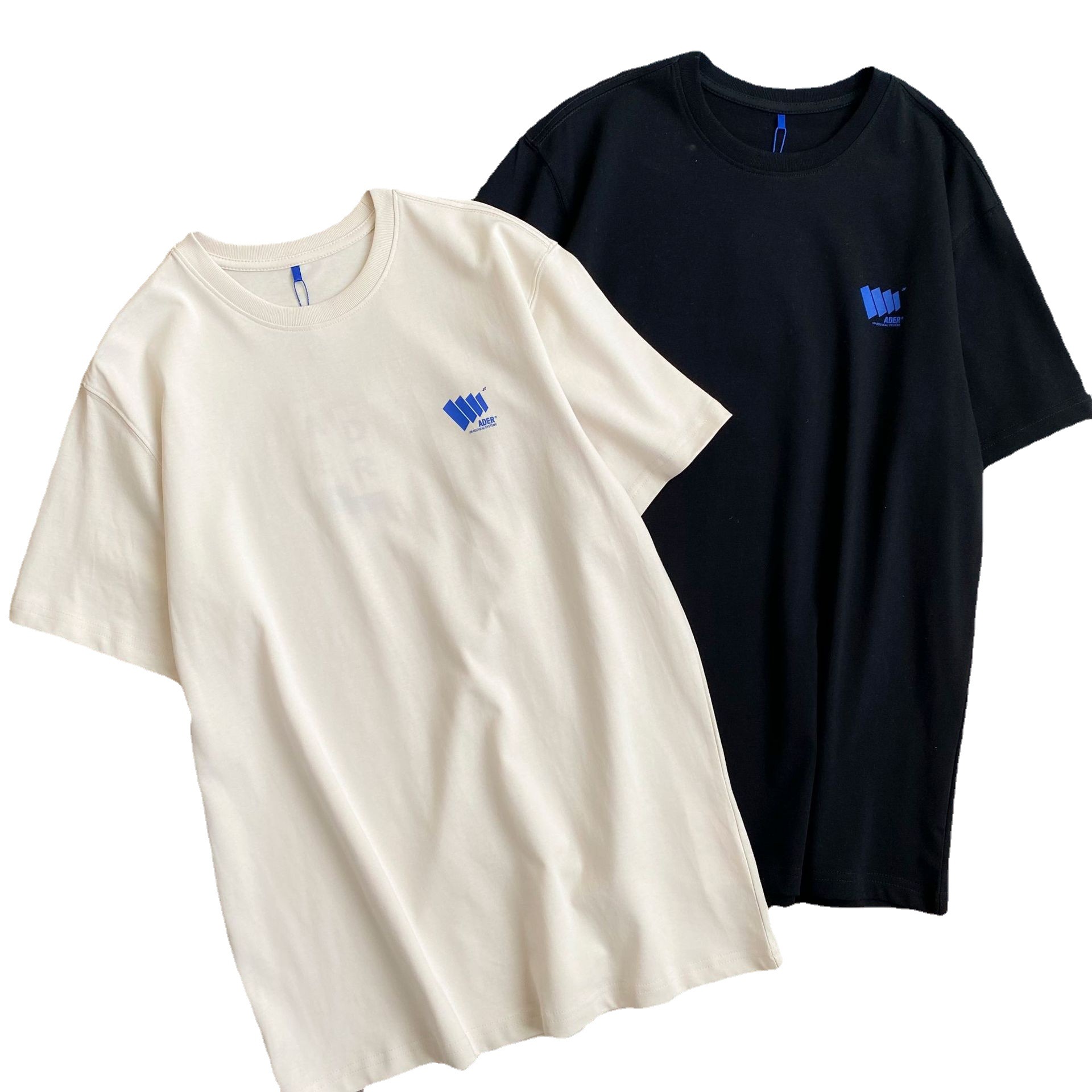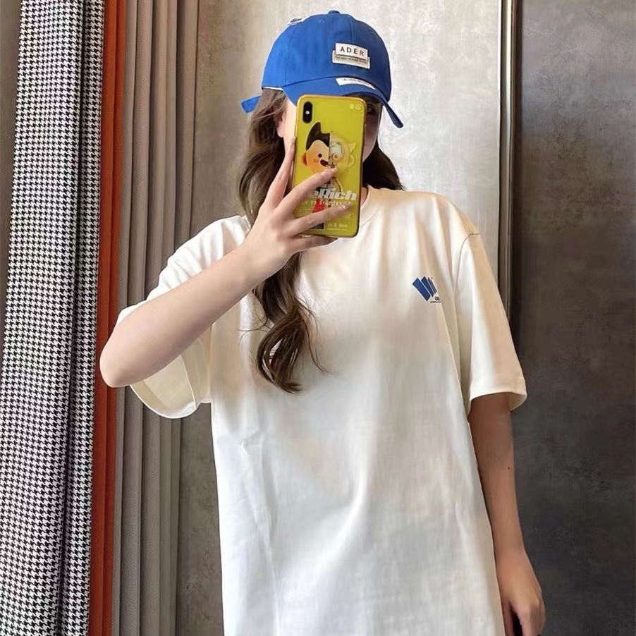 ADER韩系简约风竖纹小标T恤宽松圆领情侣短袖潮牌男女同款半袖