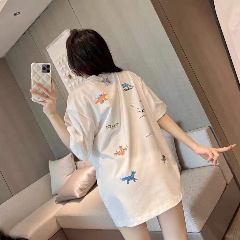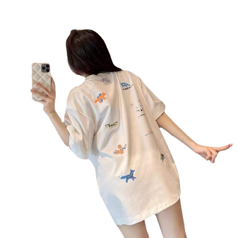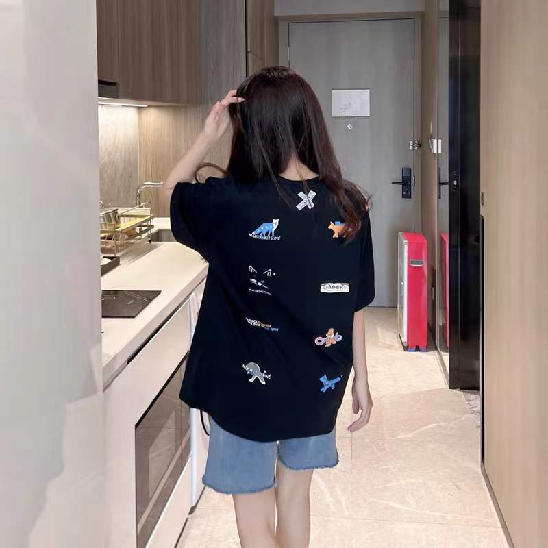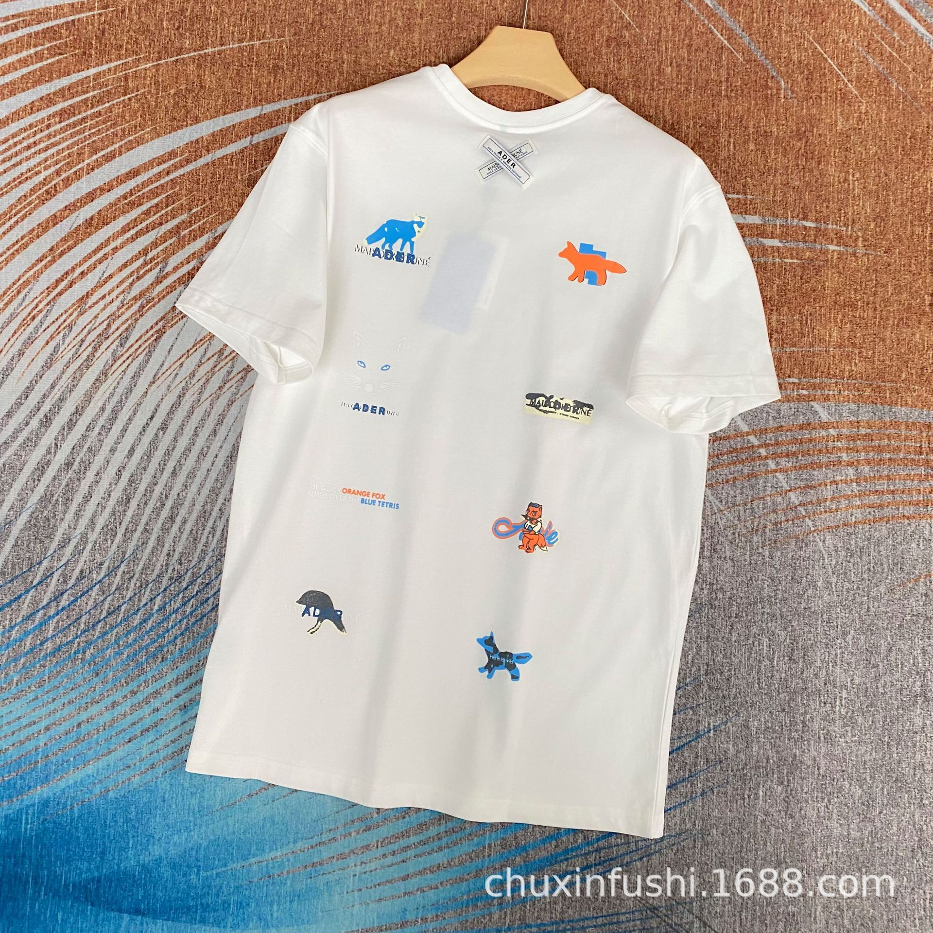 Ader夏季后背满印狐狸卡通圆领短袖 男女同款高街小众情侣T恤半袖