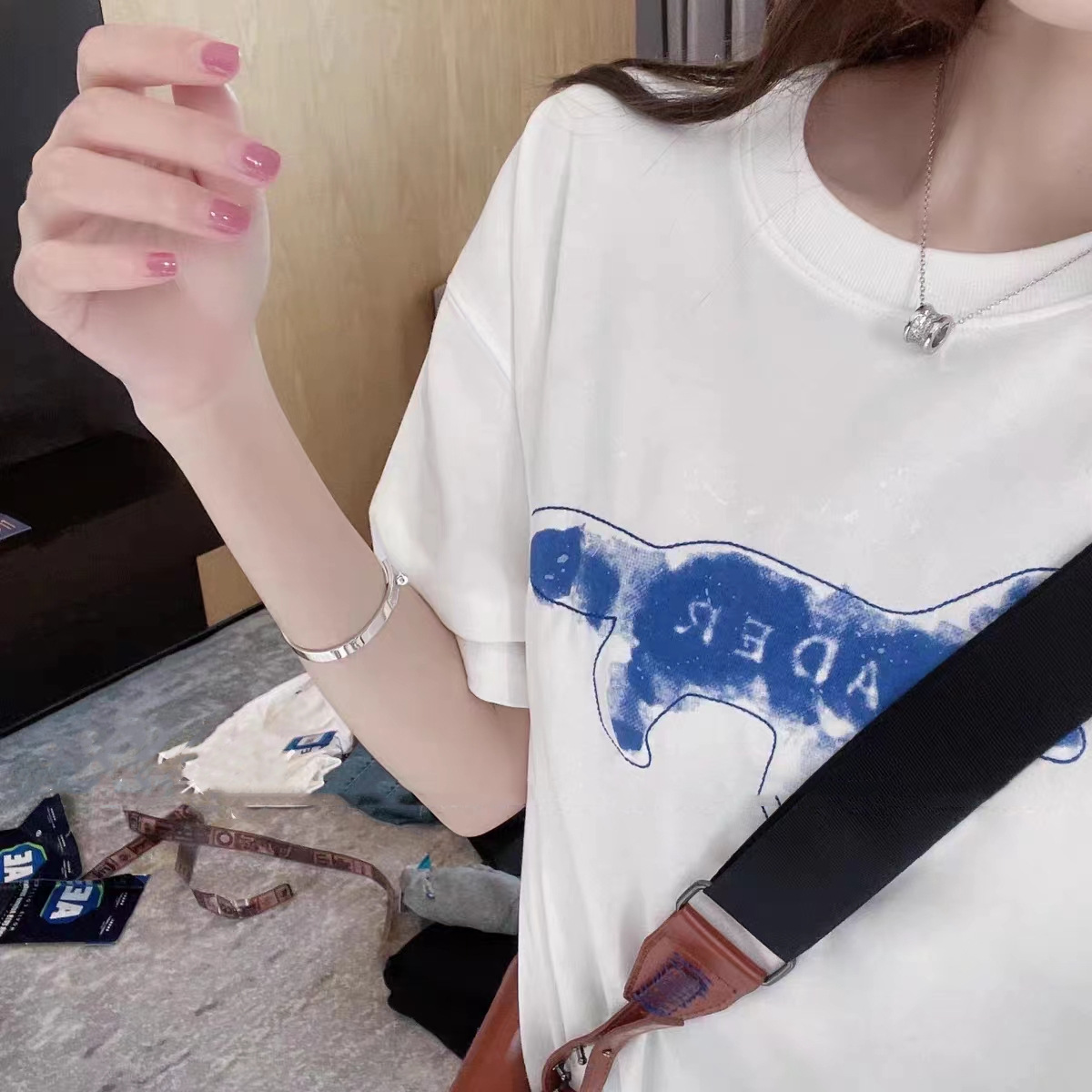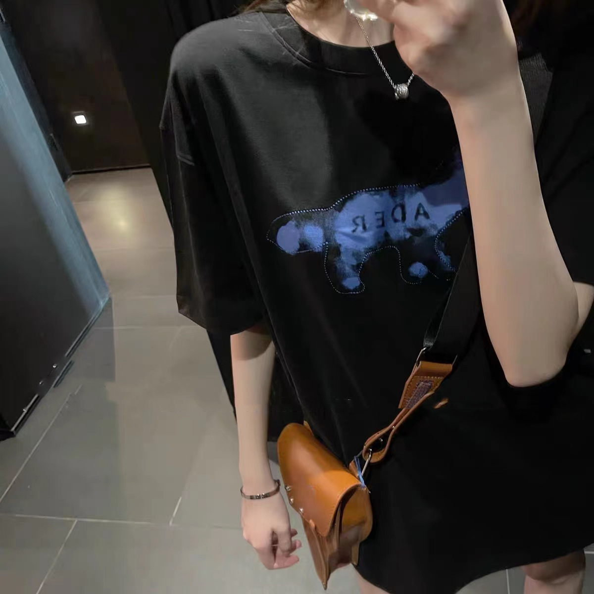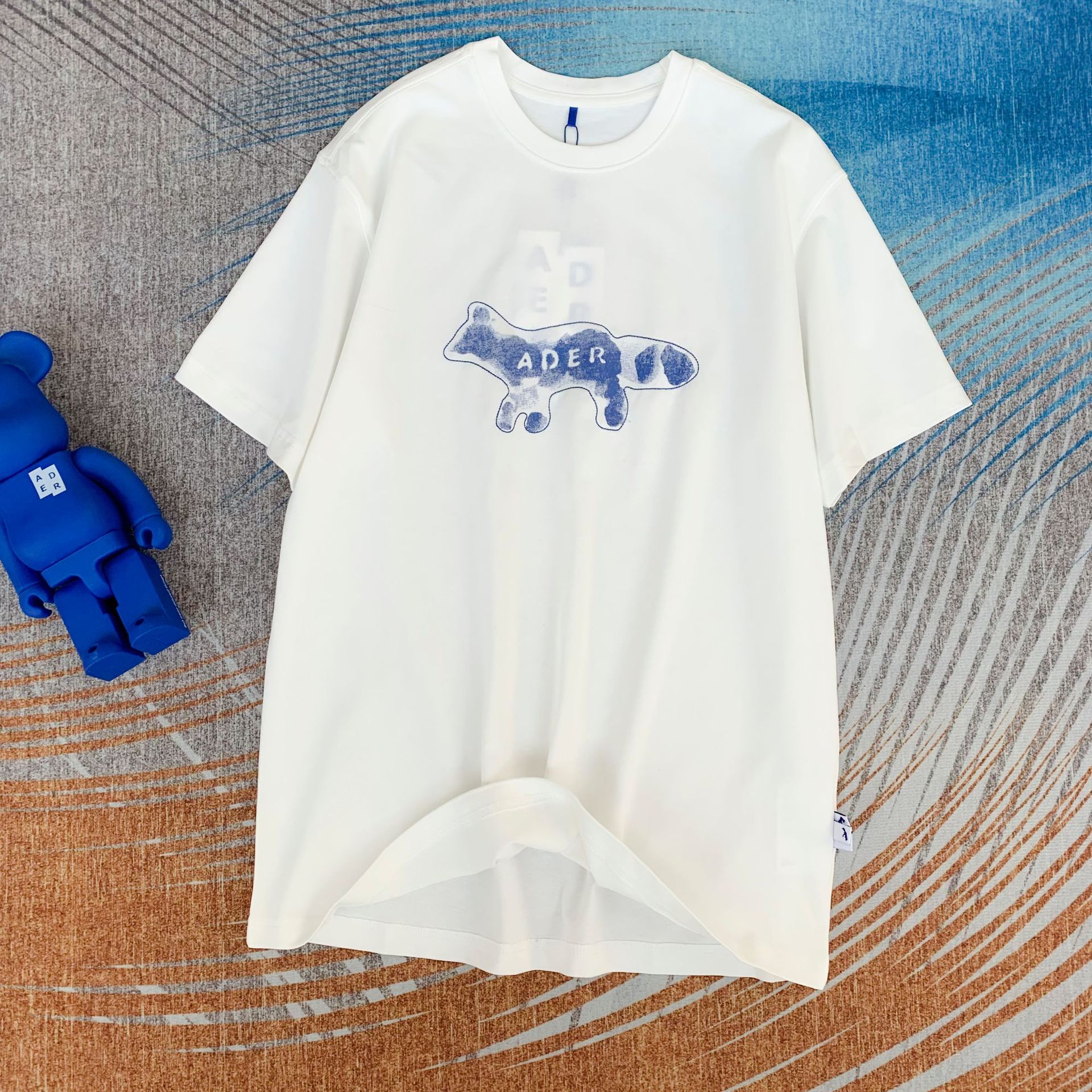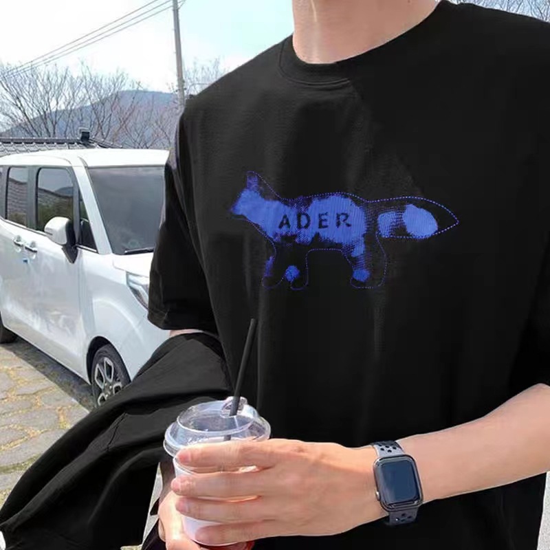 ADER潮牌可爱泼墨狐狸印花短袖男女情侣T恤宽松夏款新款半袖上衣