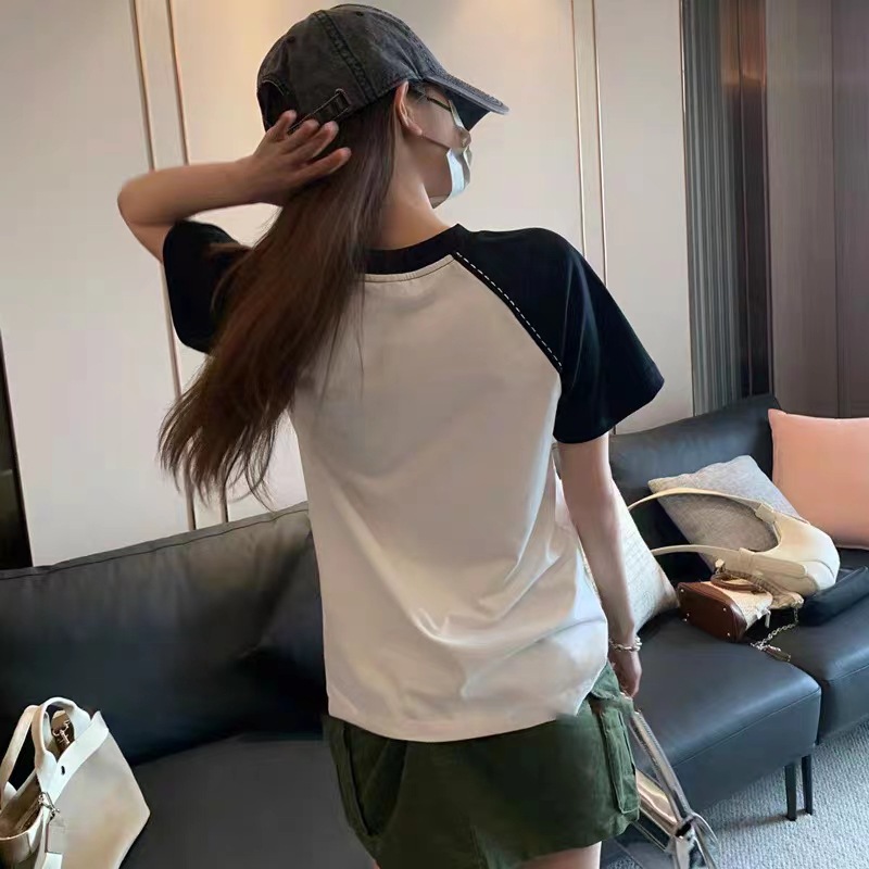 大码夏季纯棉水洗做旧短袖t恤女新款美式复古上衣潮圆领印花
