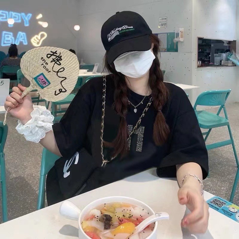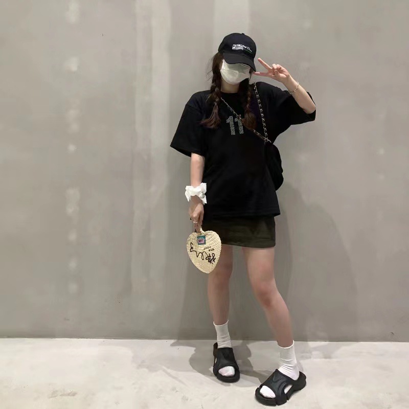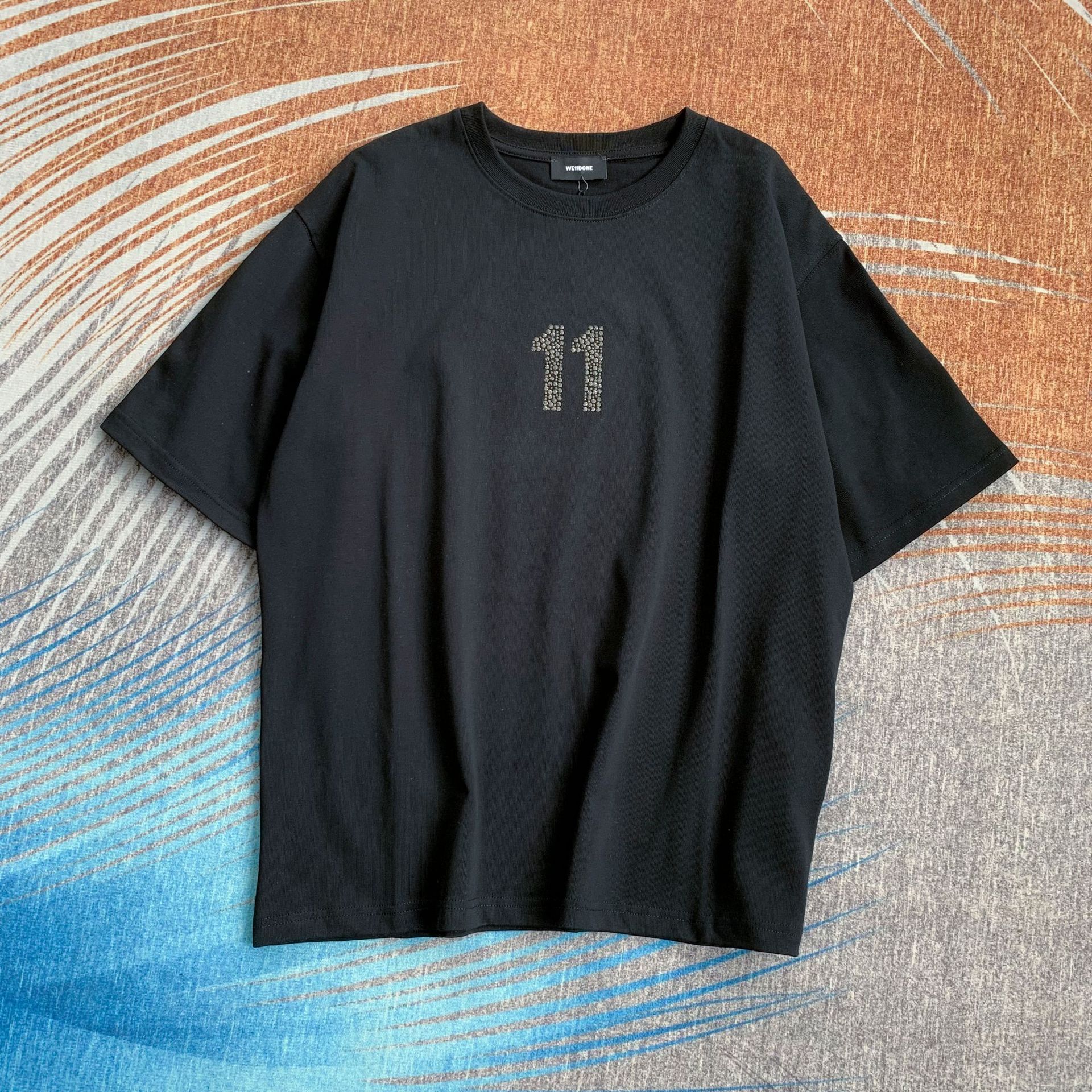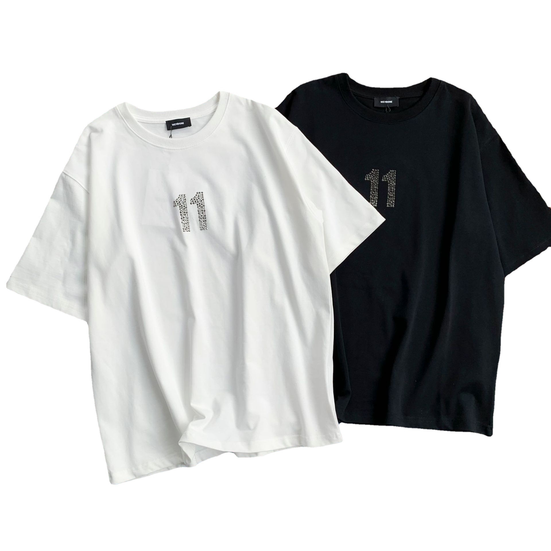 LANBOS WE11潮牌水钻11短袖男女情侣宽松夏季T恤圆领半袖