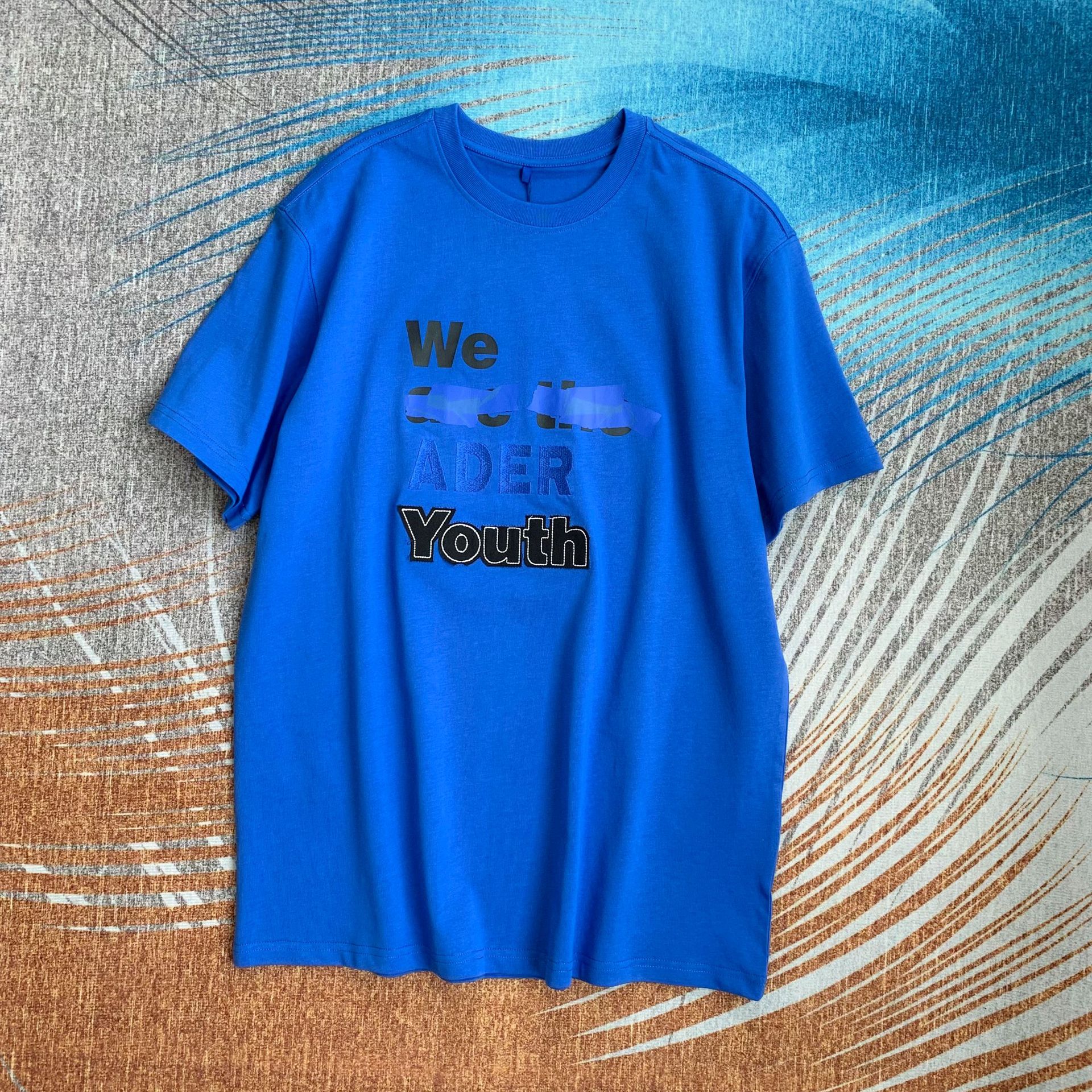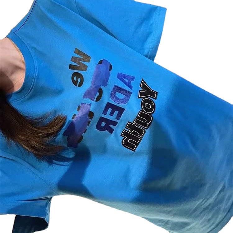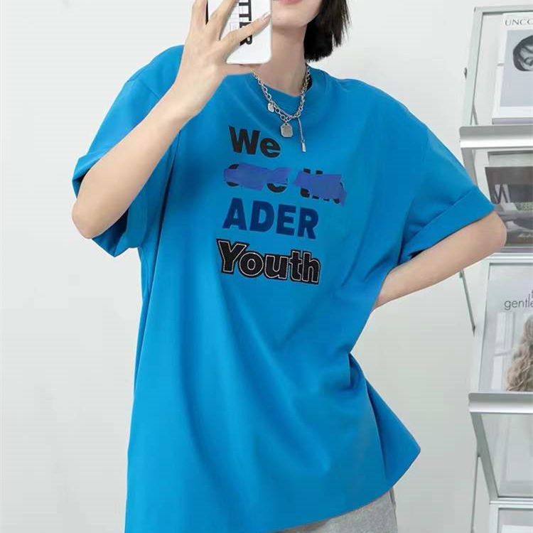 潮牌ADER小众设计标语字母贴布印花短袖男女同款T恤圆领宽松半袖