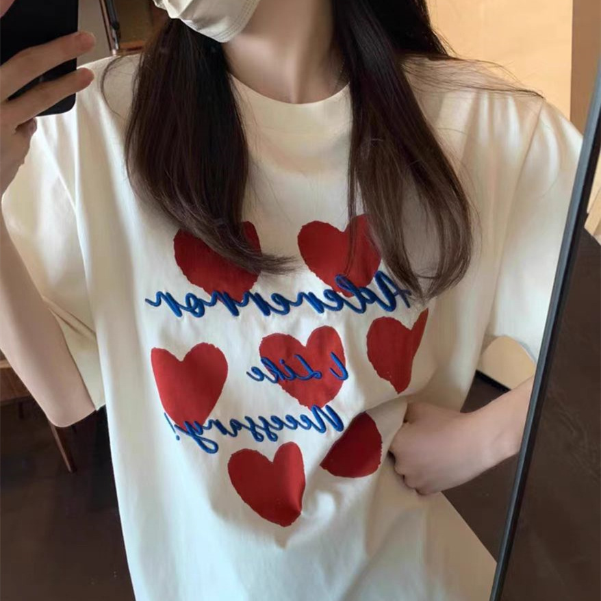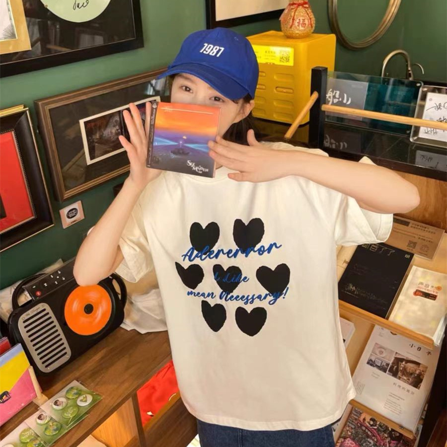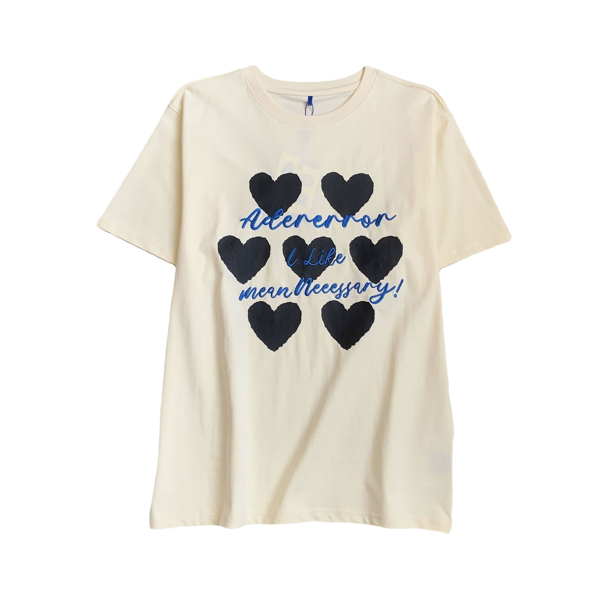 ADER夏款潮牌刺绣爱心短袖男女同款情侣T恤宽松休闲韩版上衣