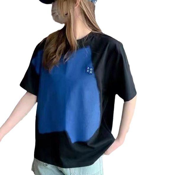 ADER潮牌撞色几何图形宽松休闲短袖t恤夏季新款男女情侣上衣半袖