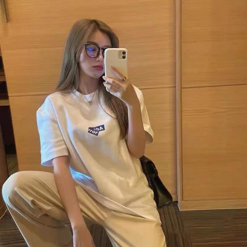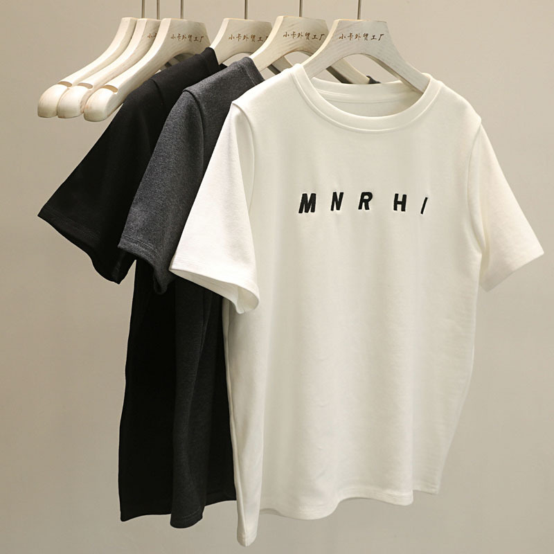 爆款来袭~字母刺绣磨毛短袖t恤女韩系春季新款休闲百搭打底衫上衣