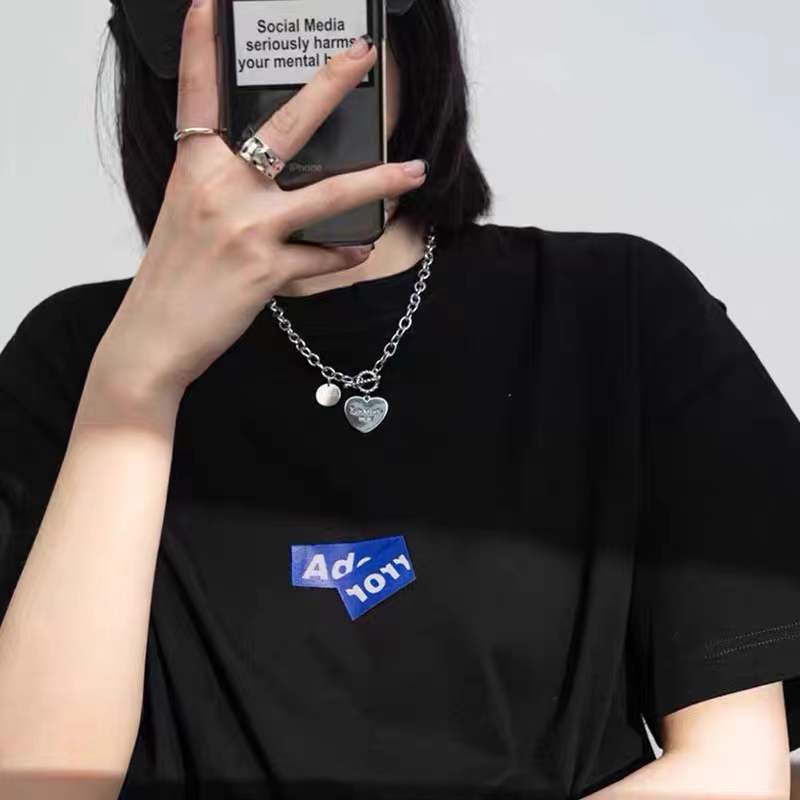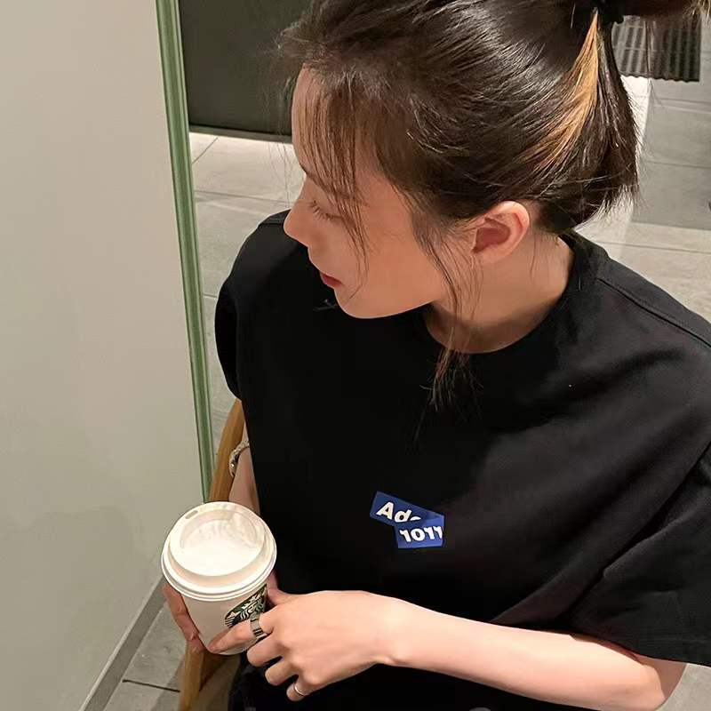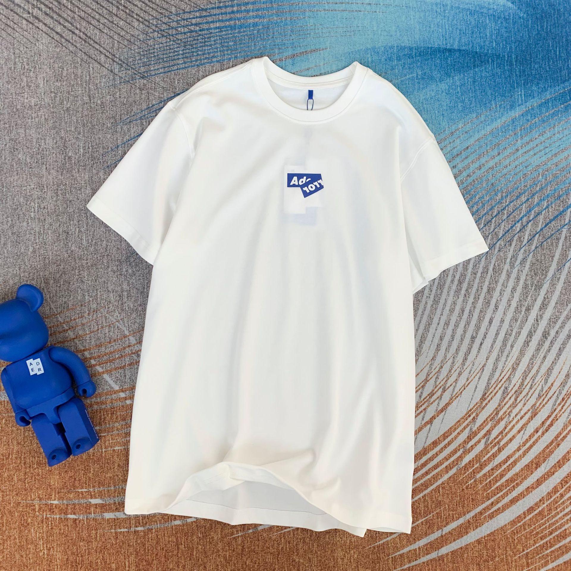 韩国ADER潮牌折叠小标圆领宽松高街男女同款短袖夏季百搭情侣T恤