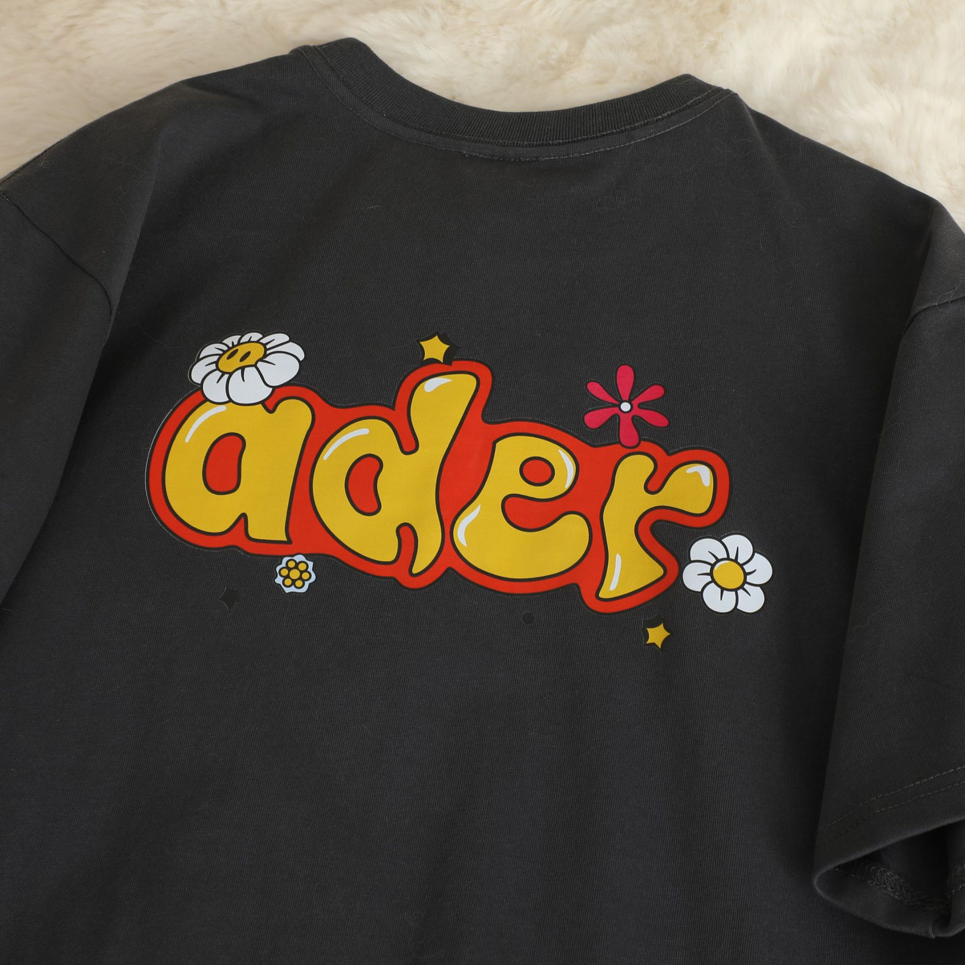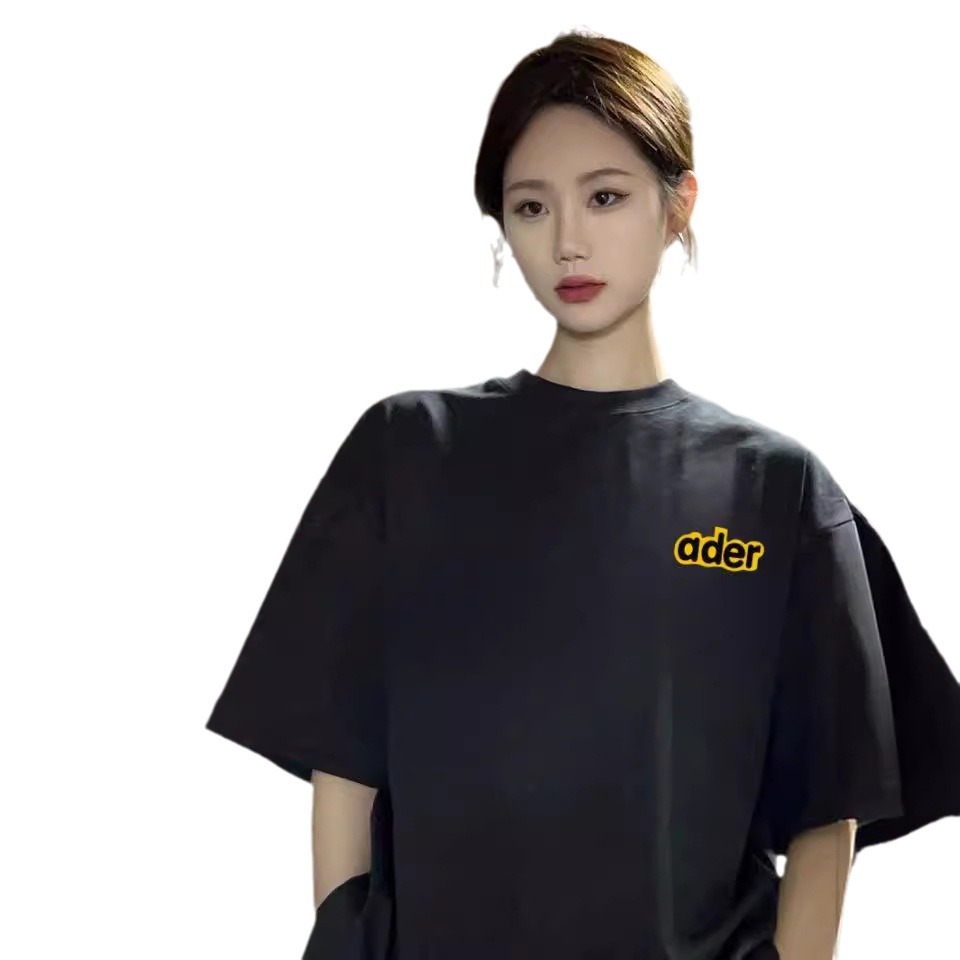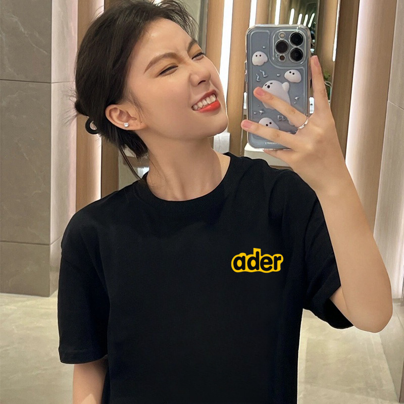 潮牌ADER夏季新款花朵字母短袖 男女情侣款印花休闲宽松T恤