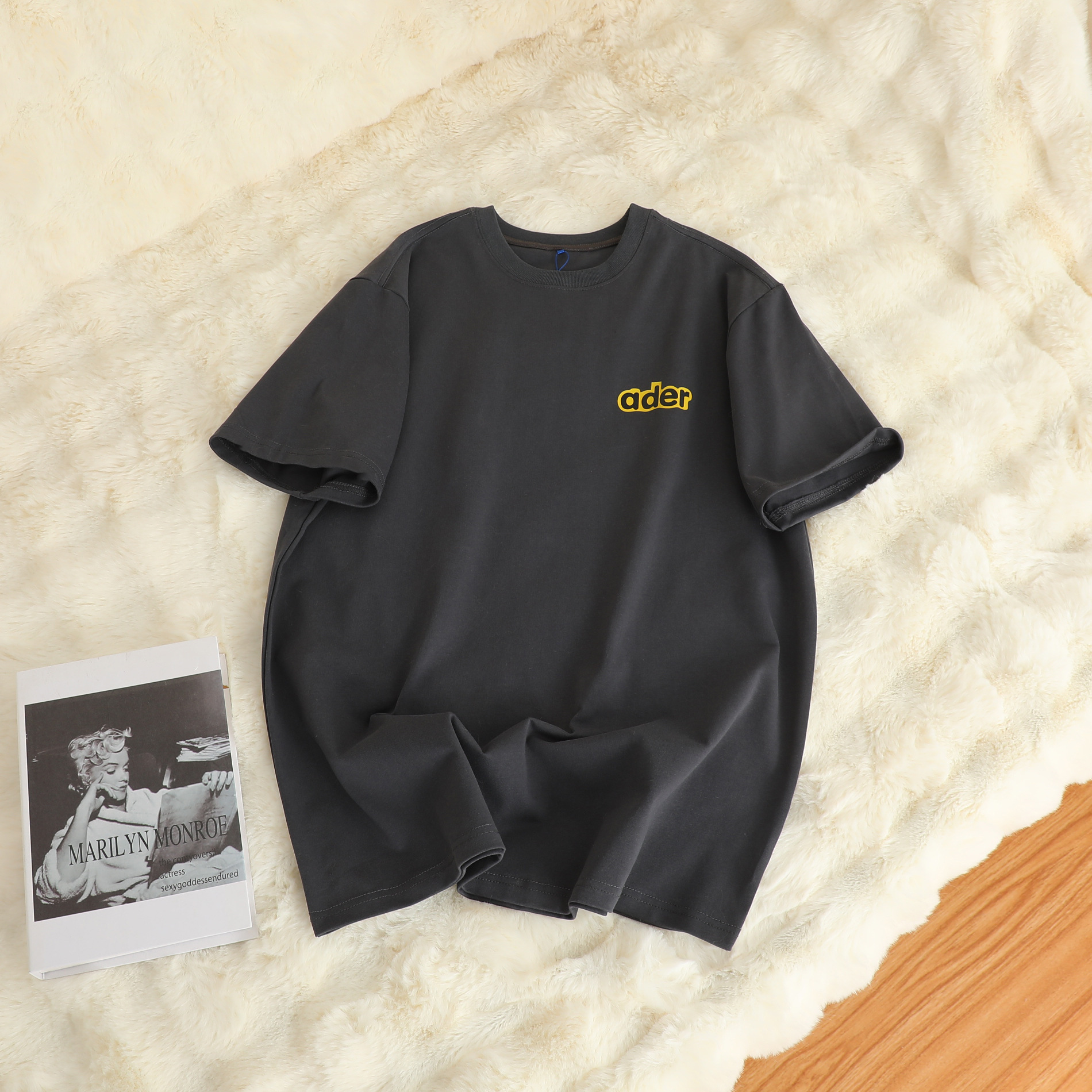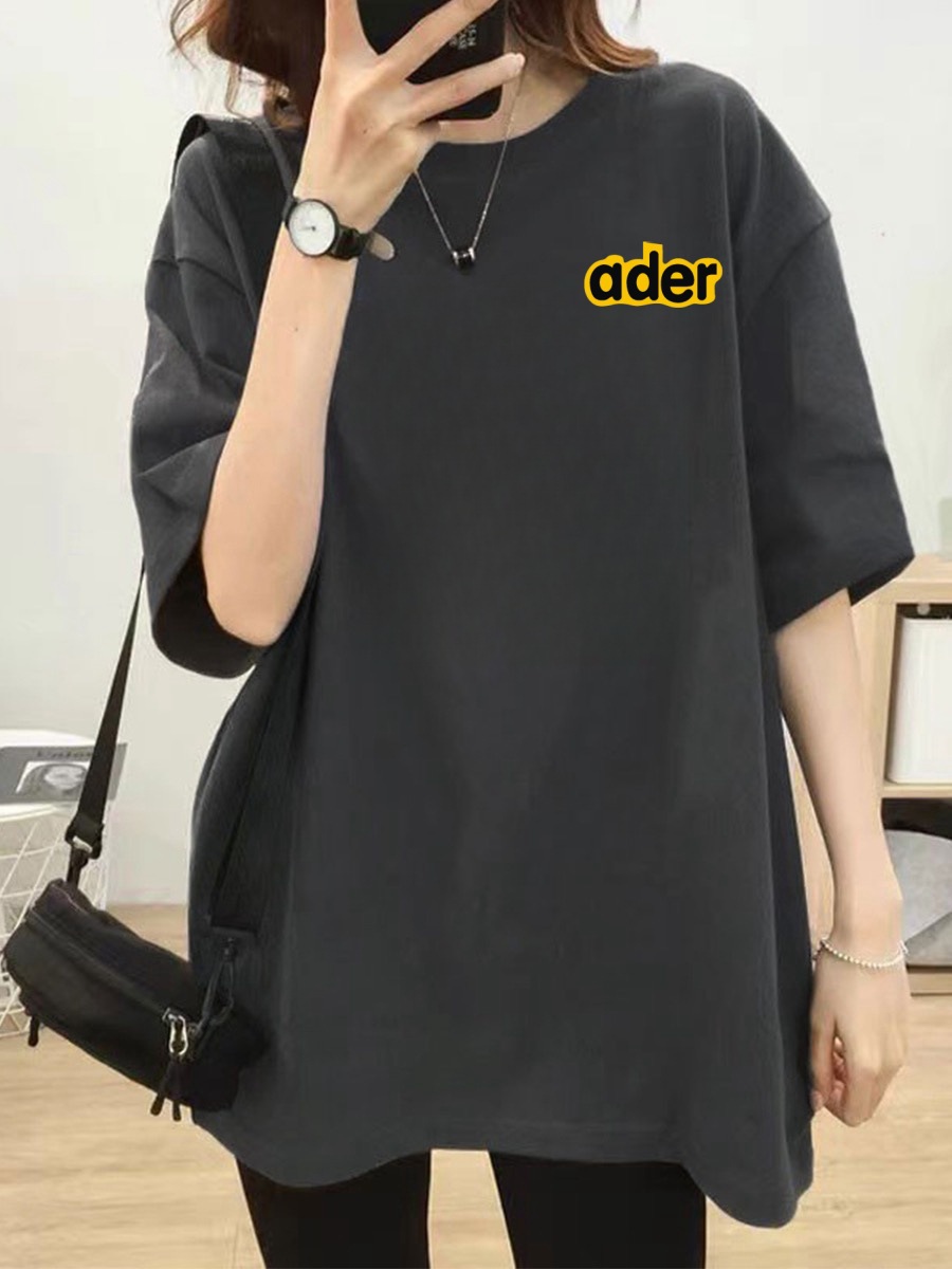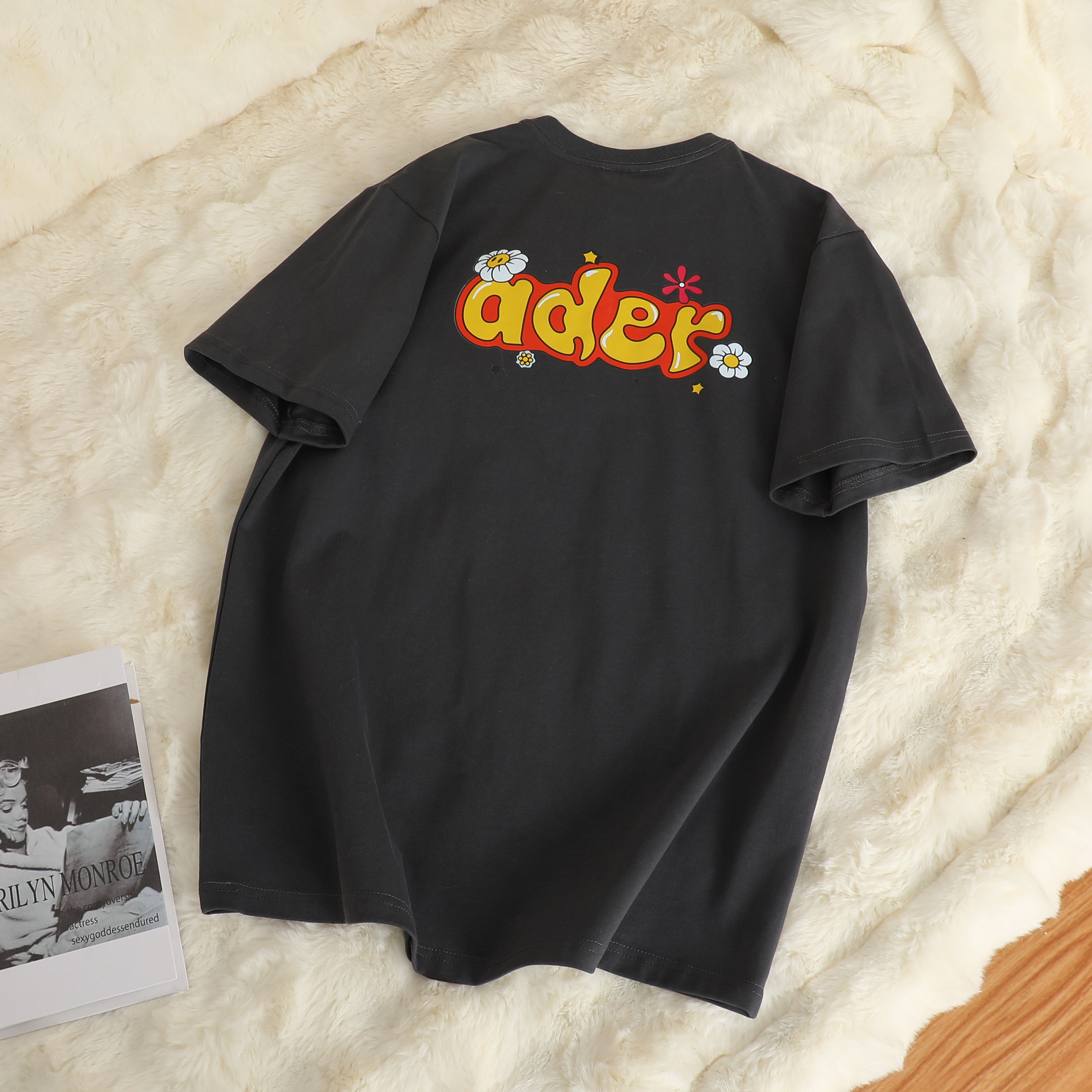 潮牌ADER夏季新款花朵字母短袖 男女情侣款印花休闲宽松T恤