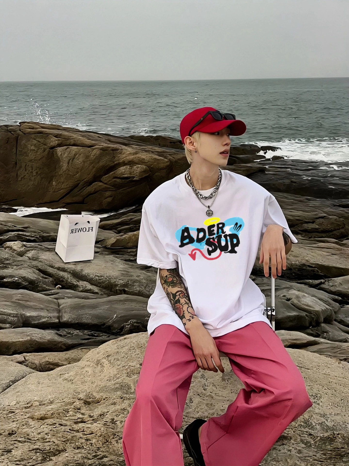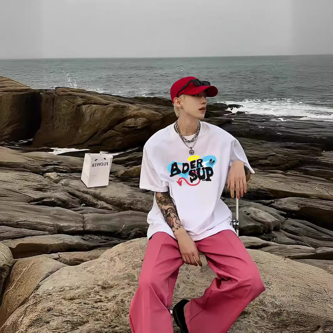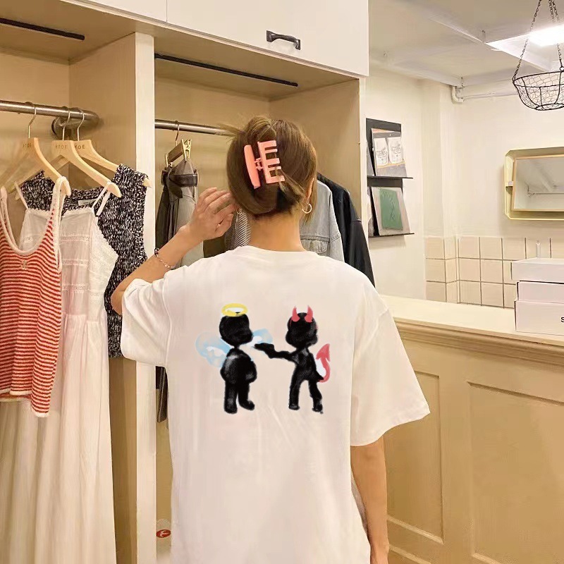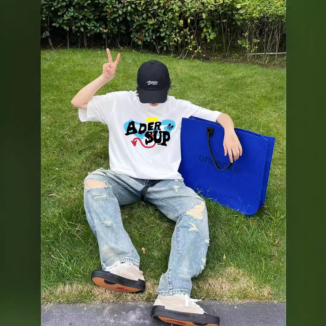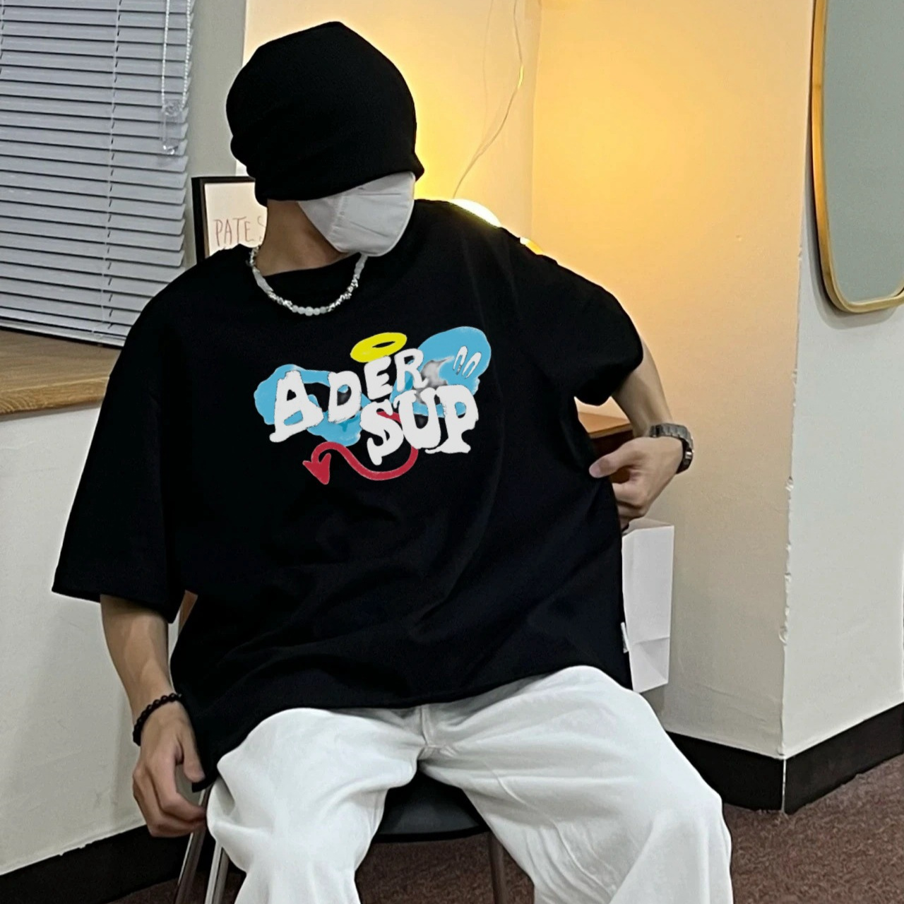 24夏季新款ADER短袖 天使与恶魔形象情侣宽松韩版半袖休闲潮流T恤