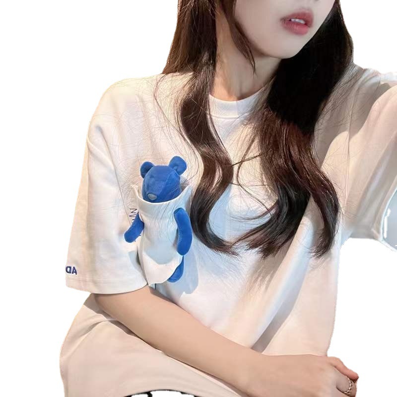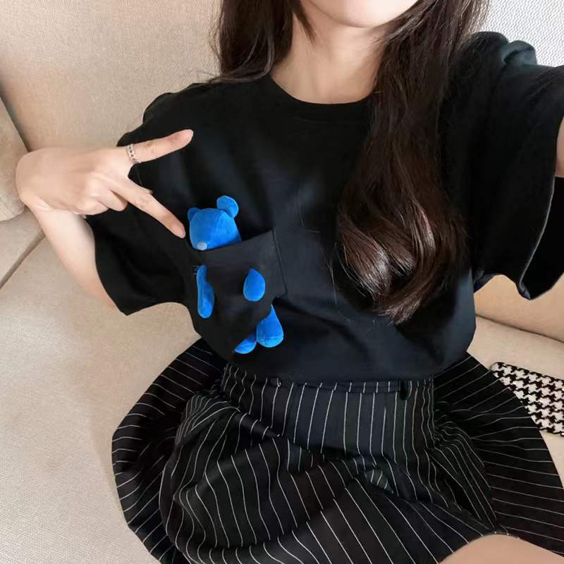 韩国潮牌ADER口袋小熊男女同款短袖设计感宽松半袖休闲情侣T恤ins