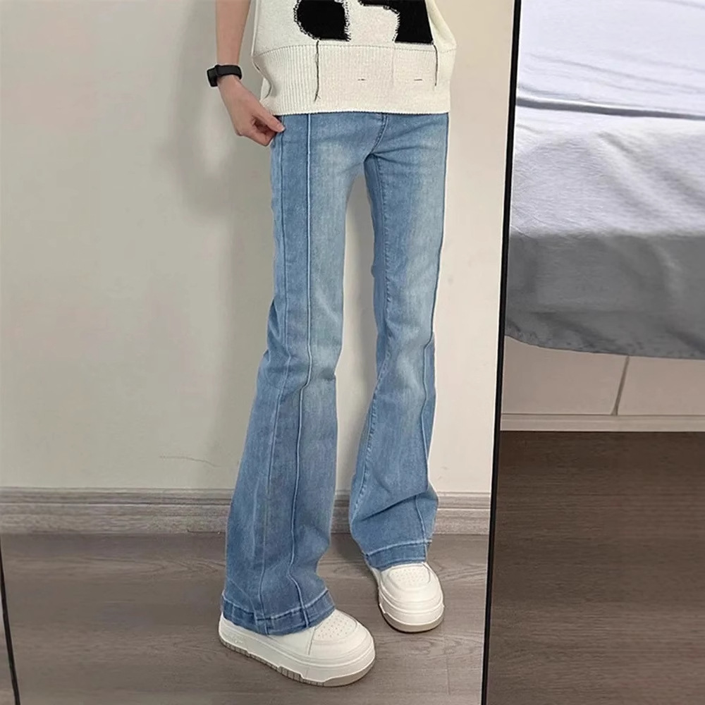 梨形身材微喇牛仔裤女大码胖妹妹复古高腰弹力显瘦喇叭马蹄长裤子