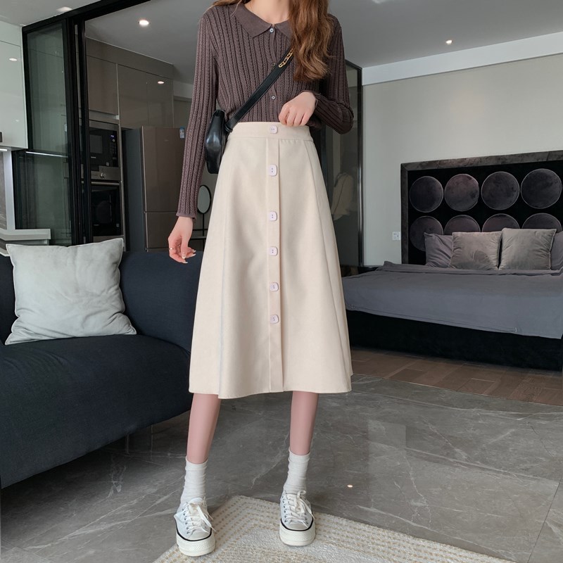 早秋新款半身裙女小个子高腰a字中长款设计感大摆裙显瘦伞