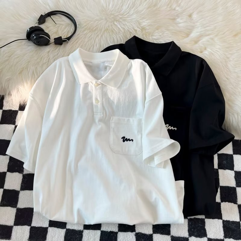 polo衫男款短袖百搭潮流宽松翻领t恤夏季学院风全棉半袖翻领上衣