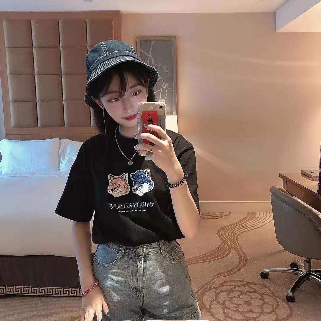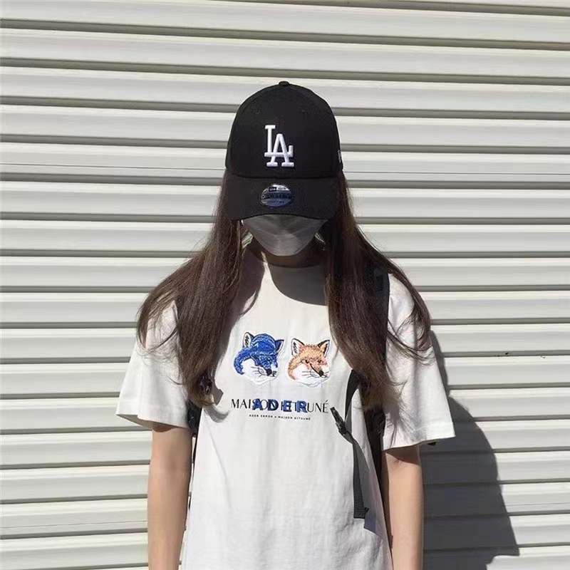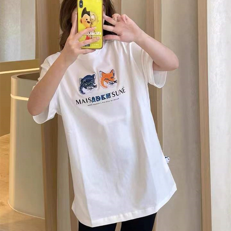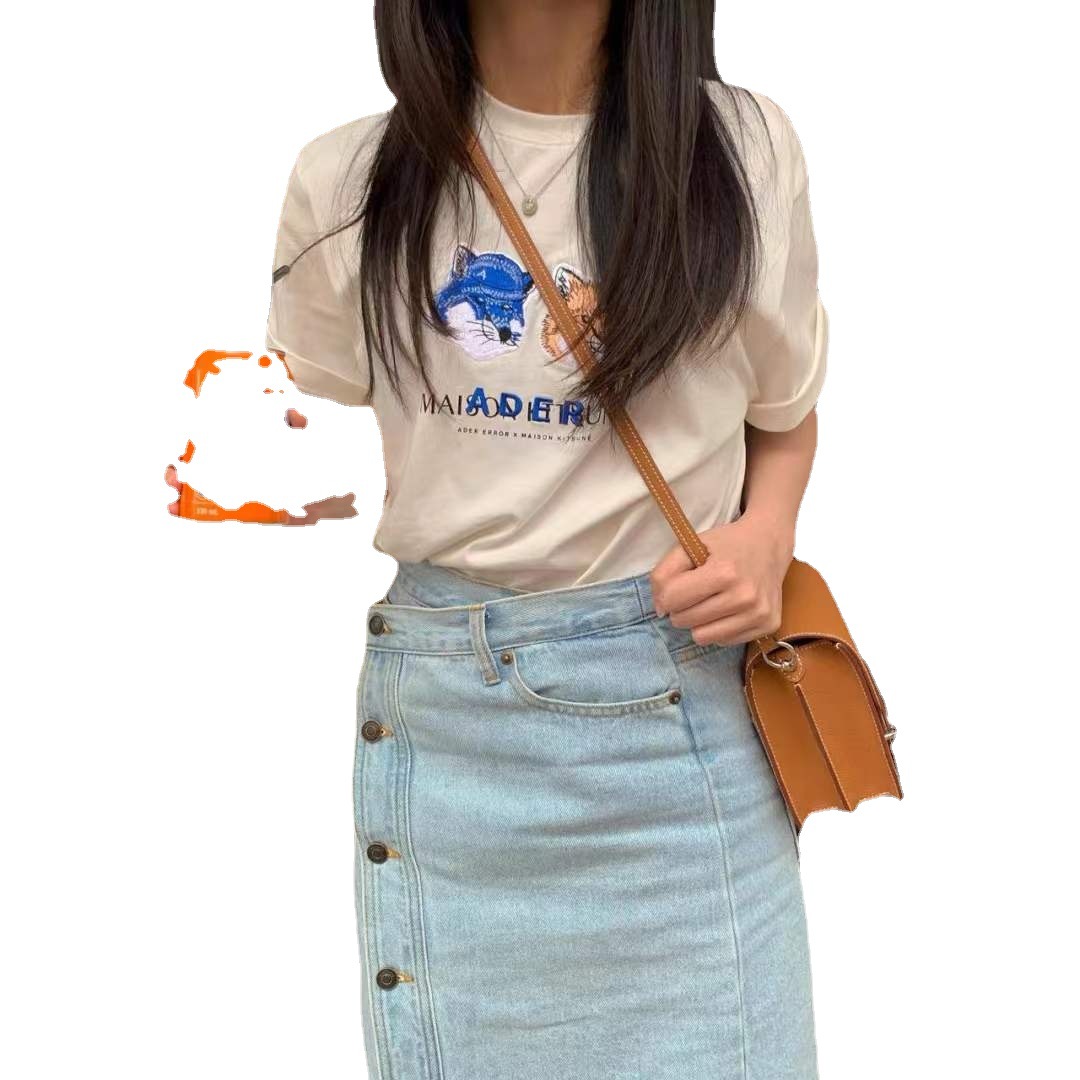 ADER短袖夏季新款重工刺绣两只狐狸头圆领宽松T恤男女同款半袖ins