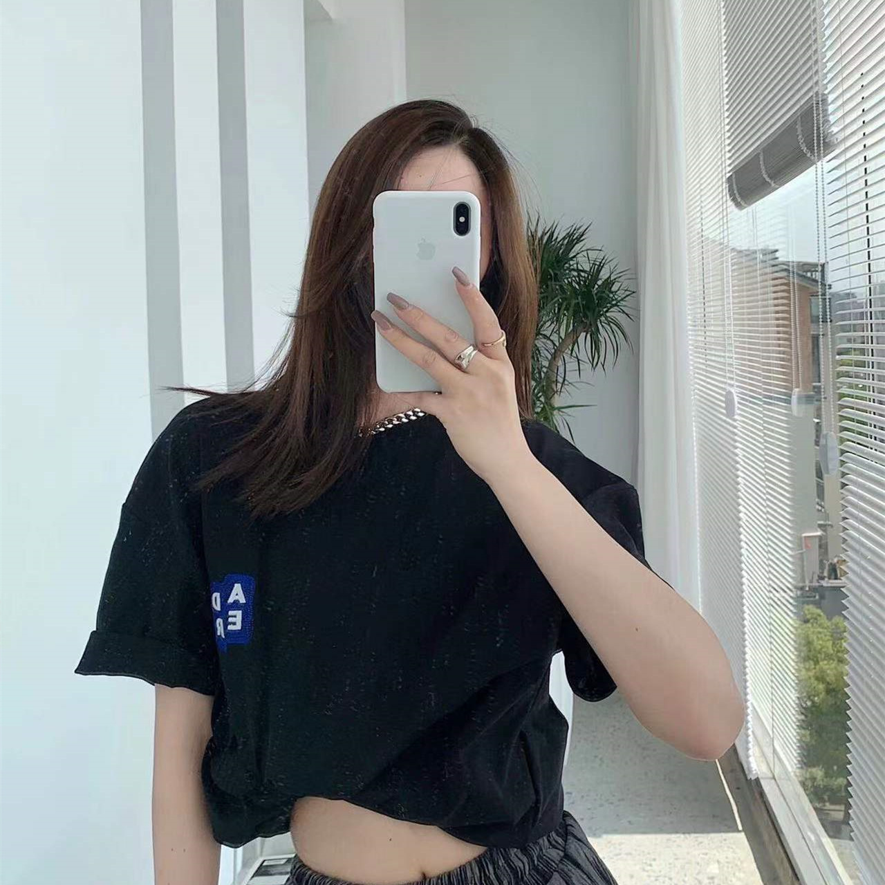 现货韩国潮牌ADER限定space3.0水波纹圆圈虚线字母短袖情侣T恤ins