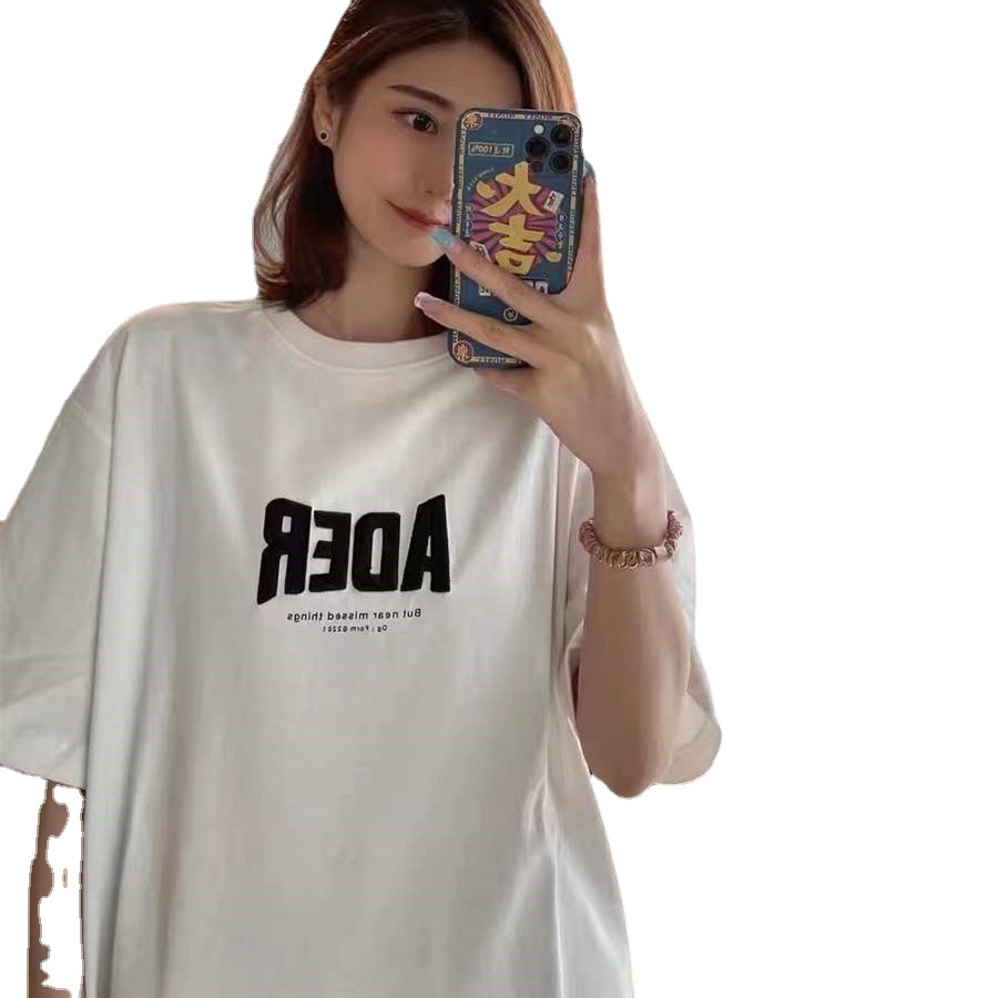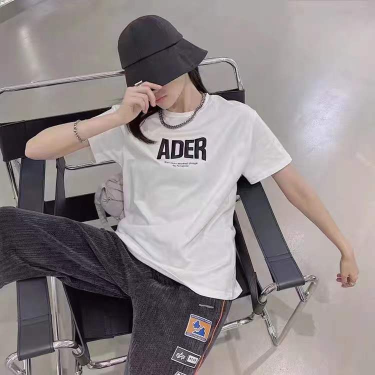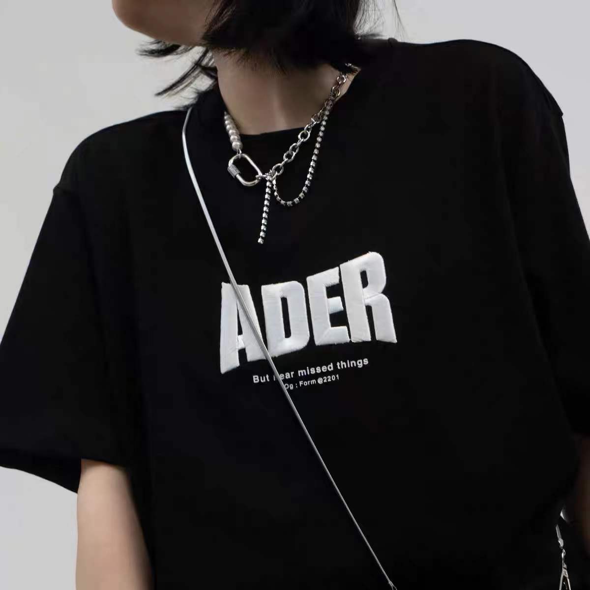 ADER宽松圆领经典立体logo字母刺绣基础款休闲简约短袖男女T恤ins