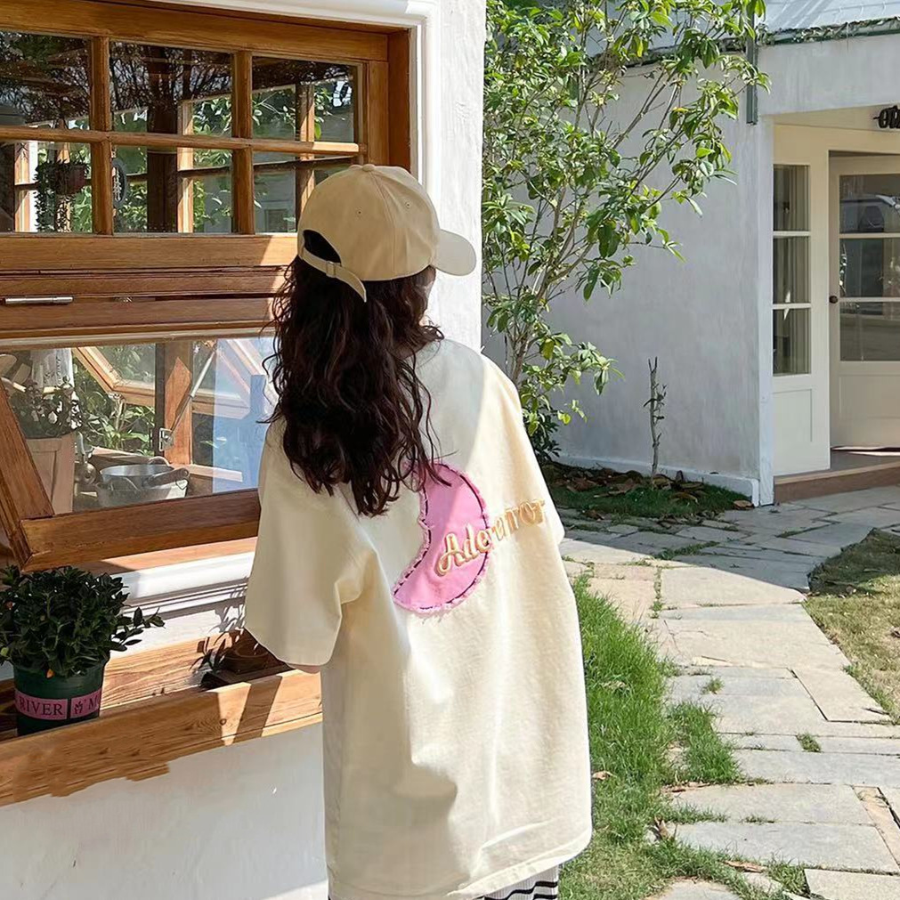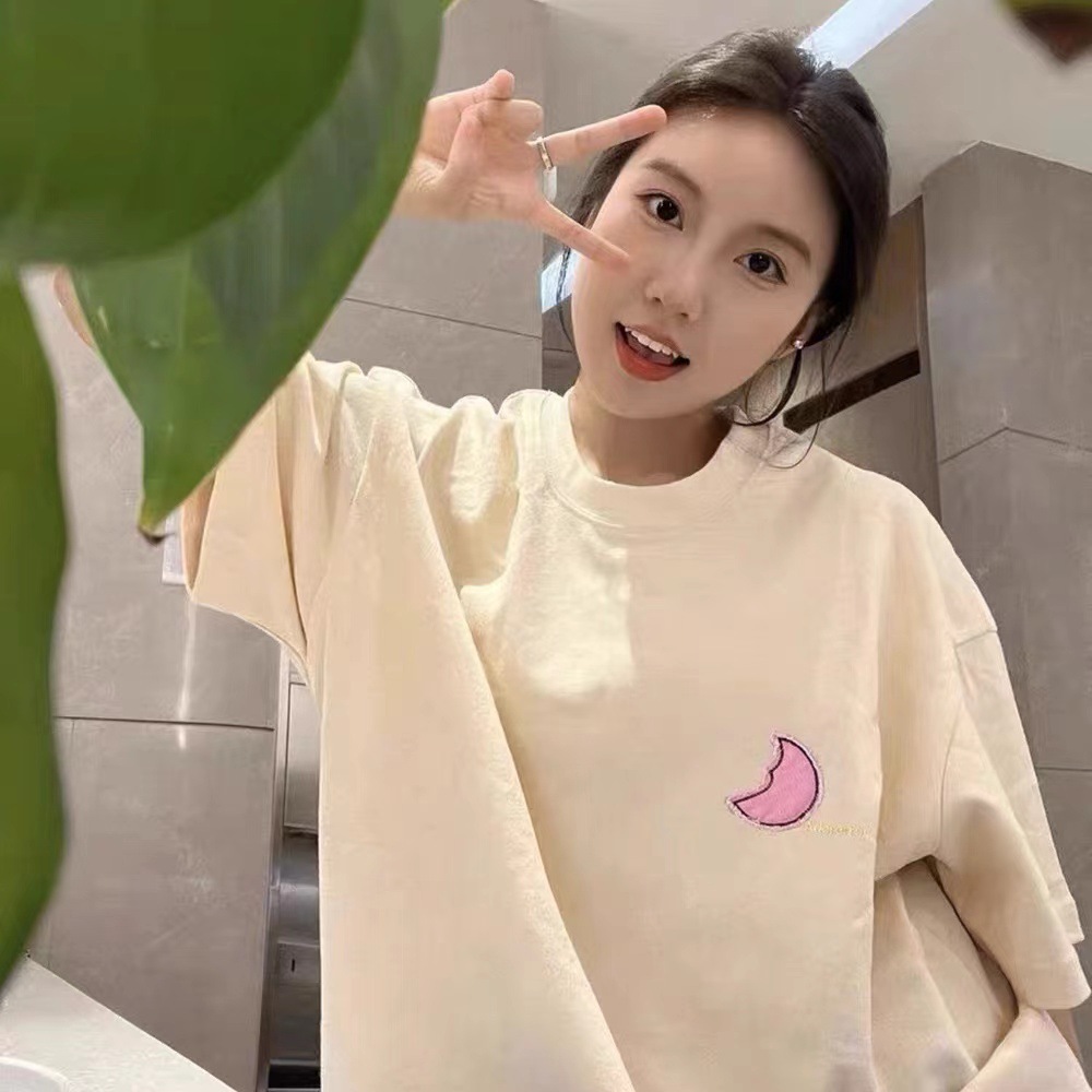 ADER刺绣月亮贴布T恤男女情侣短袖潮牌夏款宽松休闲上衣半袖
