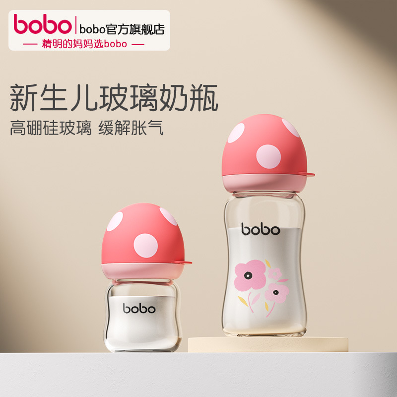 bobo新生儿玻璃奶瓶亲喂防胀气婴幼儿玻璃奶瓶