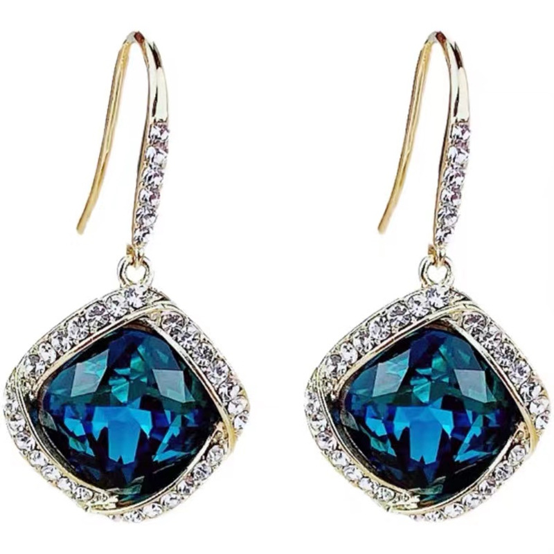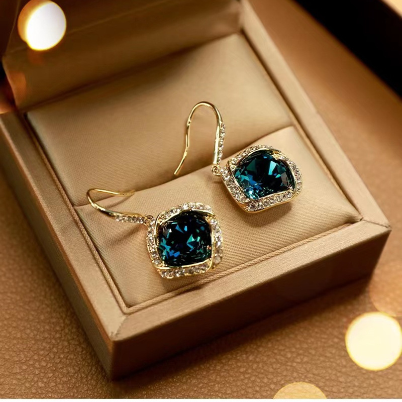 蓝色水晶耳钉款新款潮气质高级感耳坠耳饰女韩国风耳环女