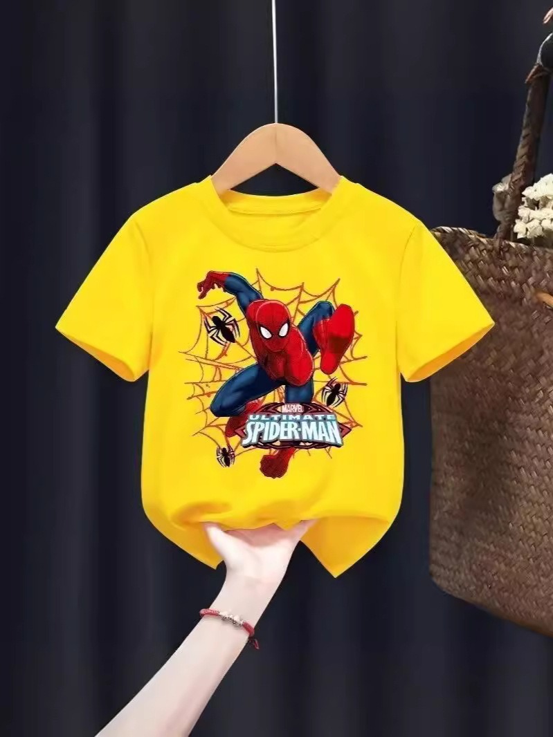 新款童装短袖t恤男童ins潮牌欧美嘻哈卡通蜘蛛上衣夏季半袖衫