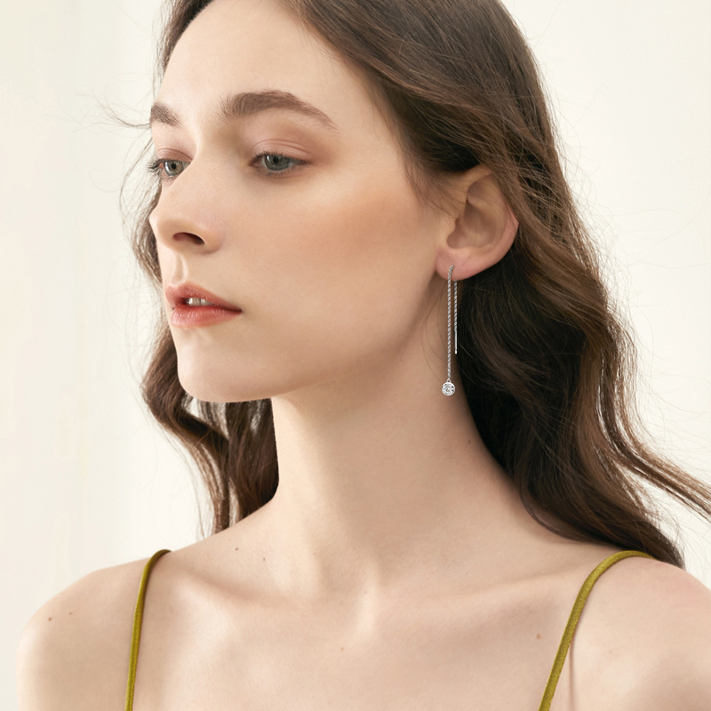网红日韩风轻奢高级感流苏耳坠气质小众莫桑钻石纯银耳饰