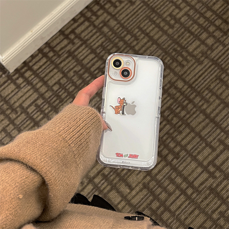 卡通透明惊讶猫和老鼠适用iPhone15手机壳苹果14promax支架13软12