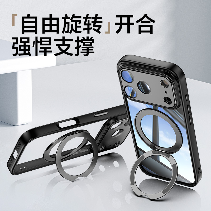 适用iPhone17手机壳360旋转铠甲支架苹果16ProMax全包镜头保护套
