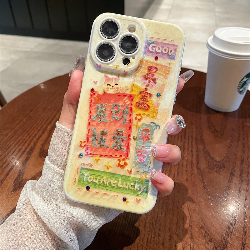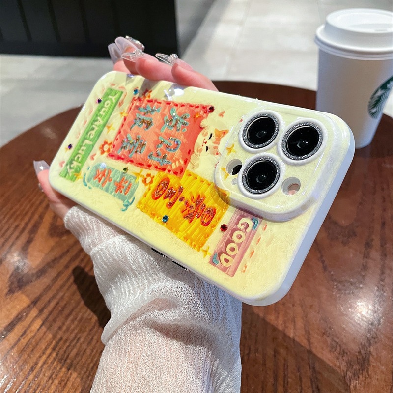 适用苹果15promax手机壳14plus全包13水钻镜头12硅胶11女创意文字