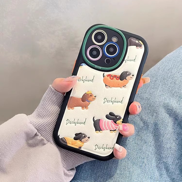 卡通小动物皮质适用iPhone15手机壳iPhone14pro情侣13promax女12p