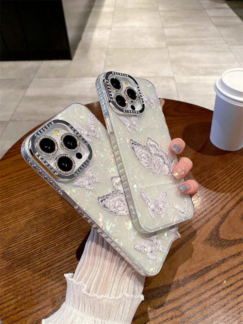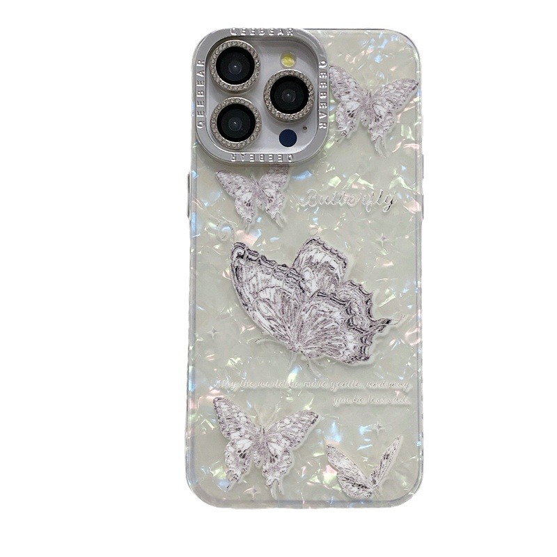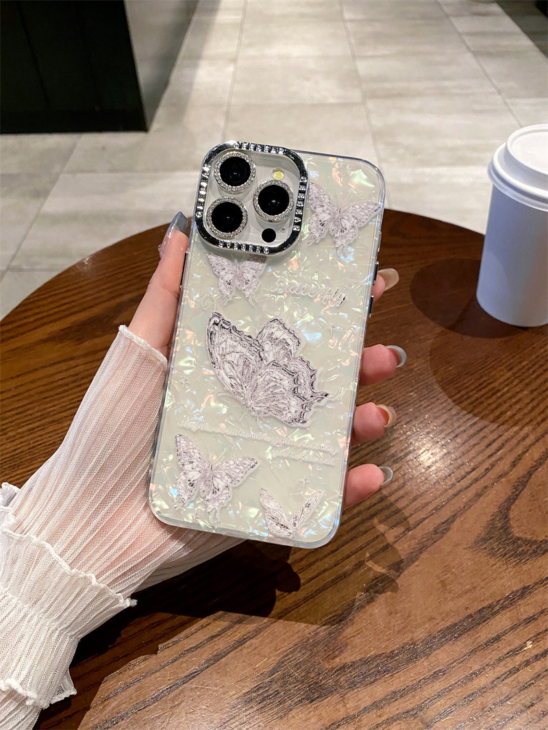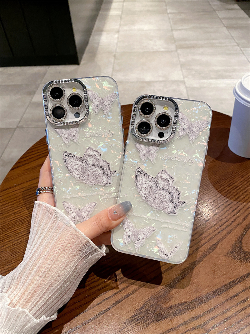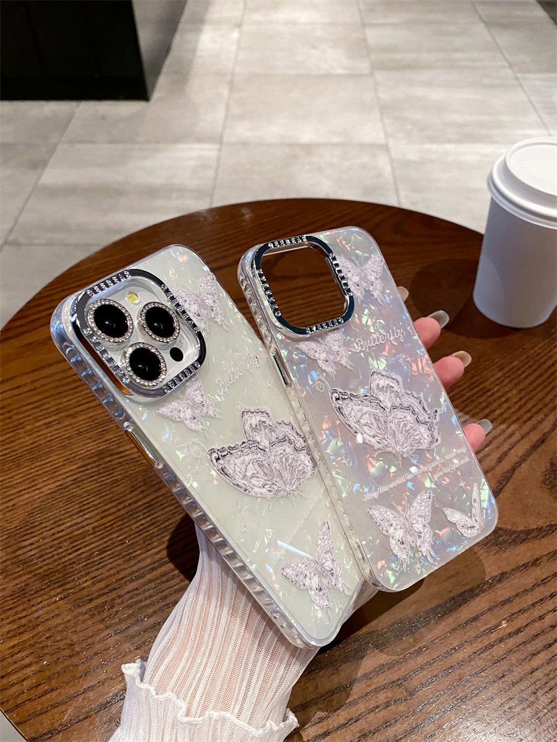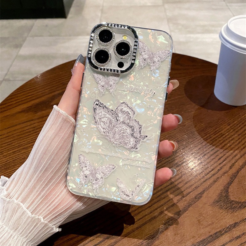 轻奢风贝壳纹蝴蝶适用iPhone15手机壳苹果14promax全包13pro女12
